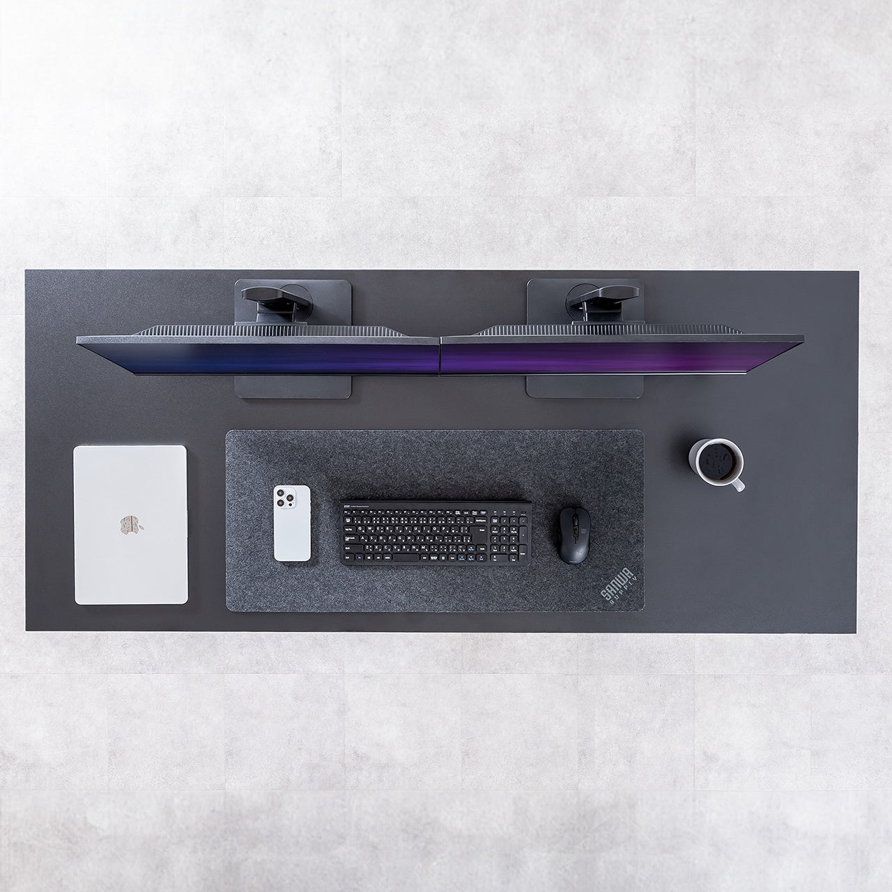 サンワサプライ株式会社(本社:岡山市北区田町1-10-1、 代表取締役社長 山田 和範)が運営している直販サイト『サンワダイレクト』では、人気のシンプルワークデスクシリーズに、デュアルモニターや周辺機器をゆったり配置できる横幅160cm・奥行70cmの“広々ワイド天板”を採用し、モニターアームにも対応し耐荷重が50kgある「100-DESKF063BK(ブラック)」「100-DESKF063W(ホワイト)」を発売しました。