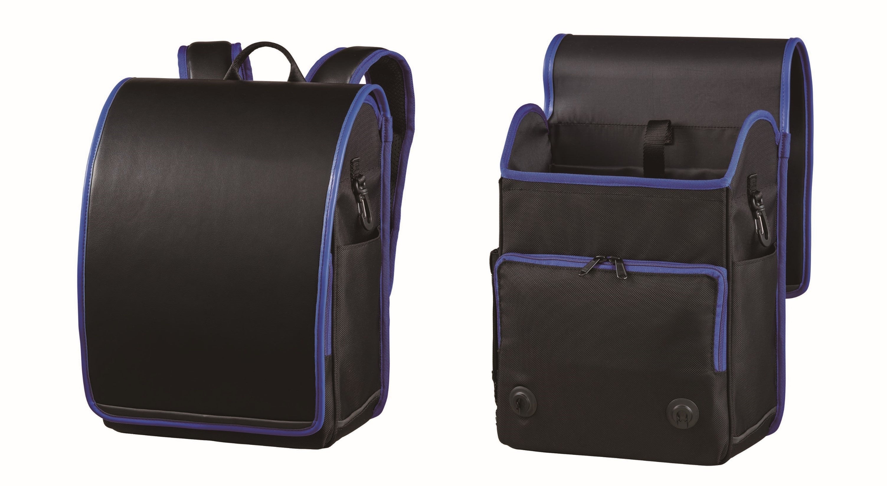 ランドセル型の通学リュックです。かぶせ素材が合成皮革のため、ランドセルのような高級感のある見た目になっています。買い替えニーズを意識し、「ブラック」を基調としたカラーを3種類に増やしています。