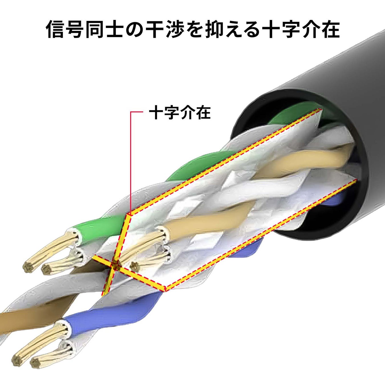 ケーブル内部に十字状の仕切りを設けることで、信号同士の干渉を抑え、安定したデータ通信を可能にしています。