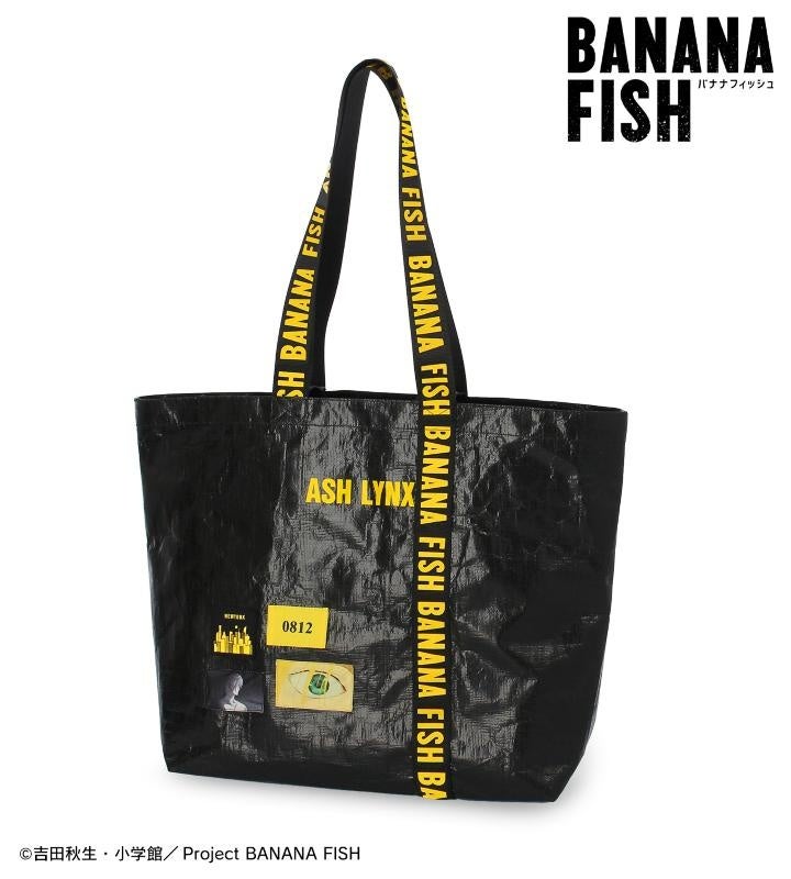 シンプルな黒色の生地をベースに、作品のイメージカラーである黄色を効果的に使い、作中の印象的なシーンやアッシュの誕生日などをタグにデザインし、本体にレイアウトしています。