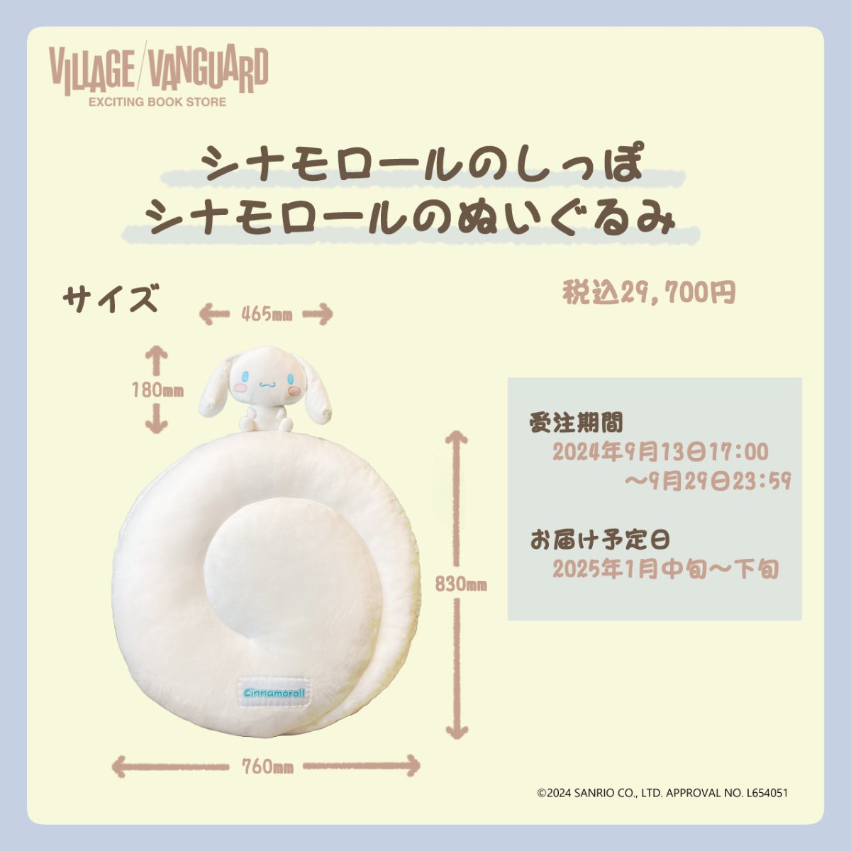 株式会社ヴィレッジヴァンガードコーポレーション(所在地:愛知県名古屋市、代表取締役社⻑:⽩川篤典)より、【サンリオキャラクターズ】シナモロールの『シナモロールのしっぽ&ぬいぐるみセット』ヴィレッジヴァンガード限定商品の発売が決定!