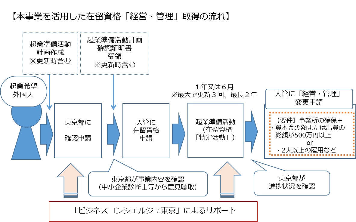 東京都は、平成28年から外国人の東京での創業活動を支援するため、国家戦略特別区域法に基づく「外国人創業人材受入促進事業」を実施してきました。