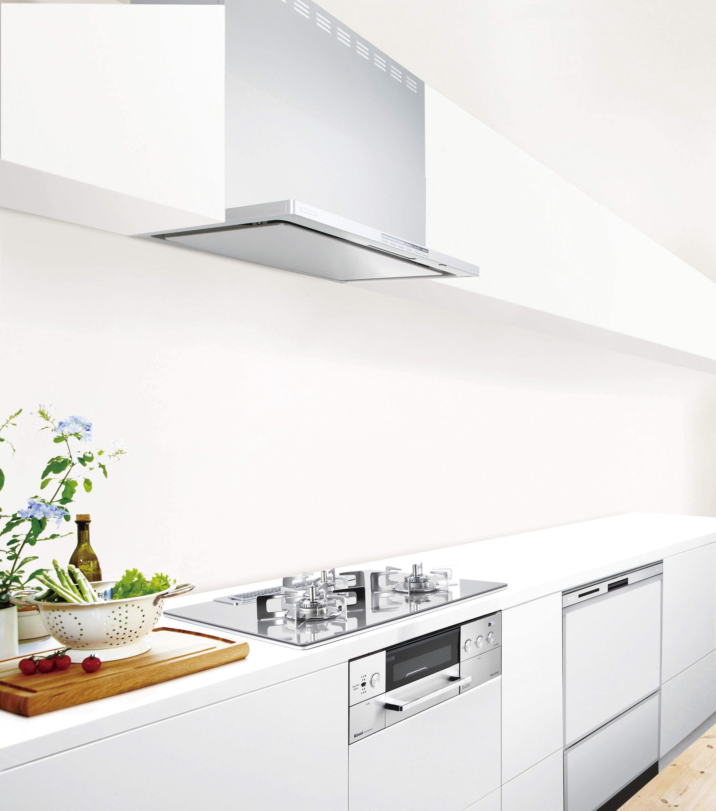 “家事を未来のスタンダードへ”アプリ連携の自動調理コンロ、自動で風量を調節するレンジフード、プラズマクラスター搭載の清潔な食器洗い乾燥機などのセットです。
