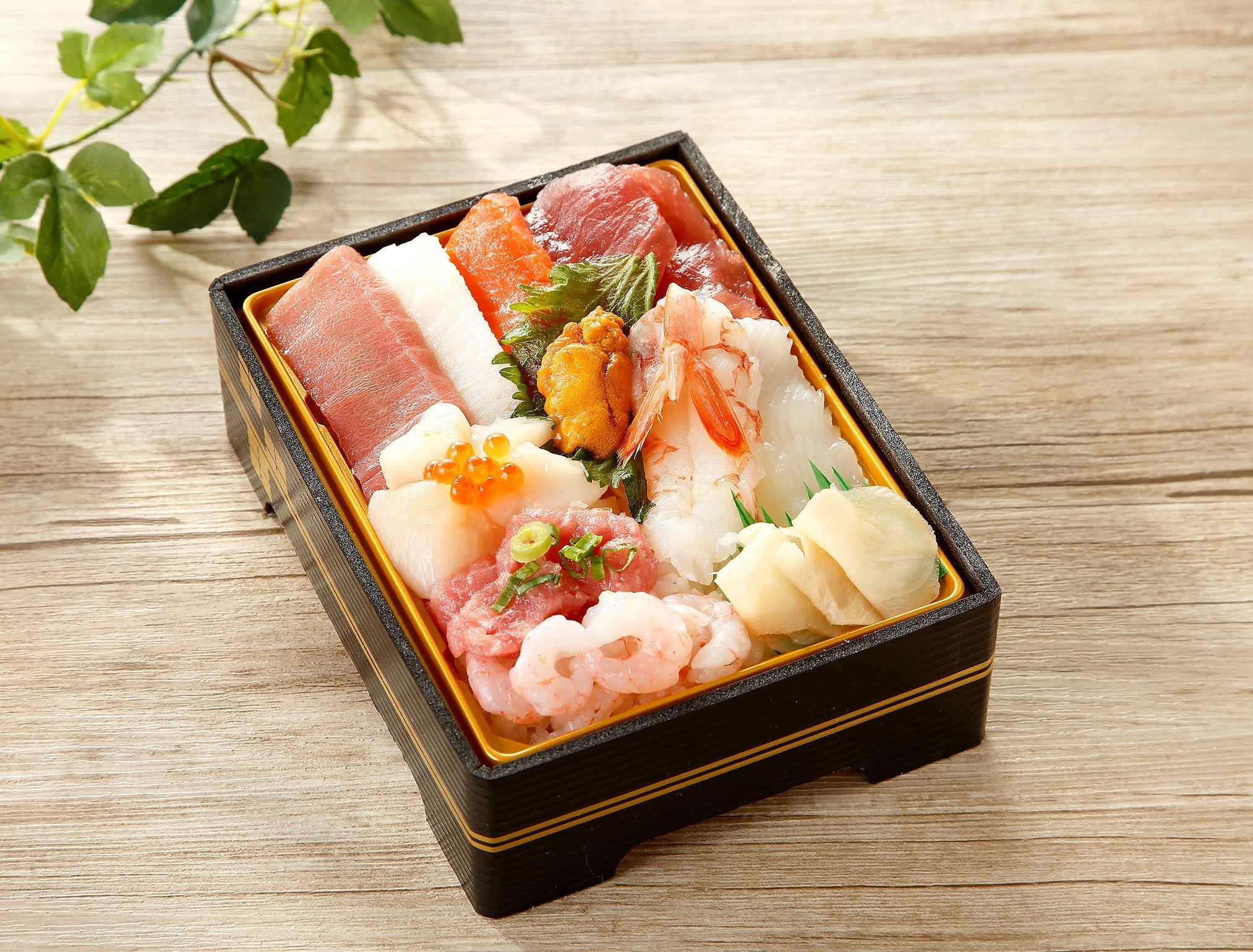 本まぐろ中とろ、ほたて、いくら、赤海老など11種具材の豪華海鮮丼です。(一部取り扱いが無い店舗がございます)