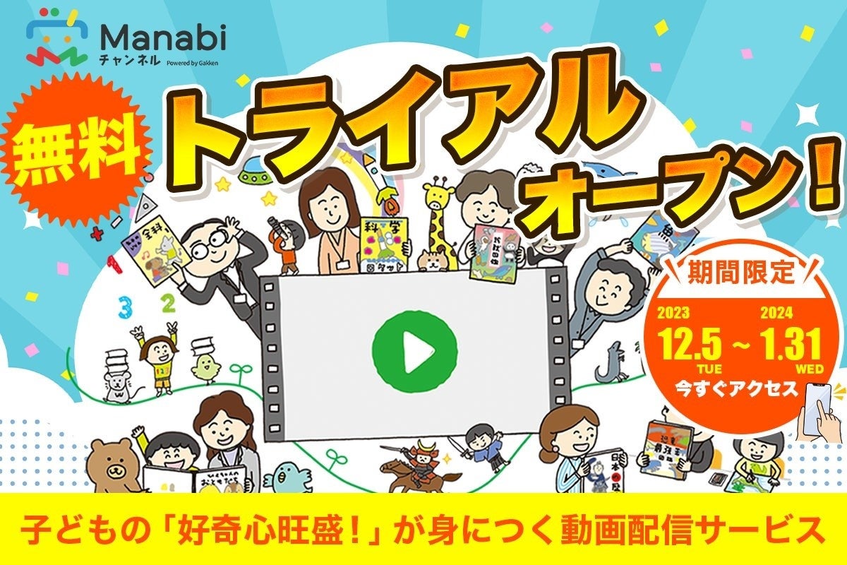 2023年12月5日(火)より2024年1月31日(水)までの約2か月間の限定で、オリジナル新作動画が40本以上見られる「まなびチャンネル」の無料トライアル版公開中です。