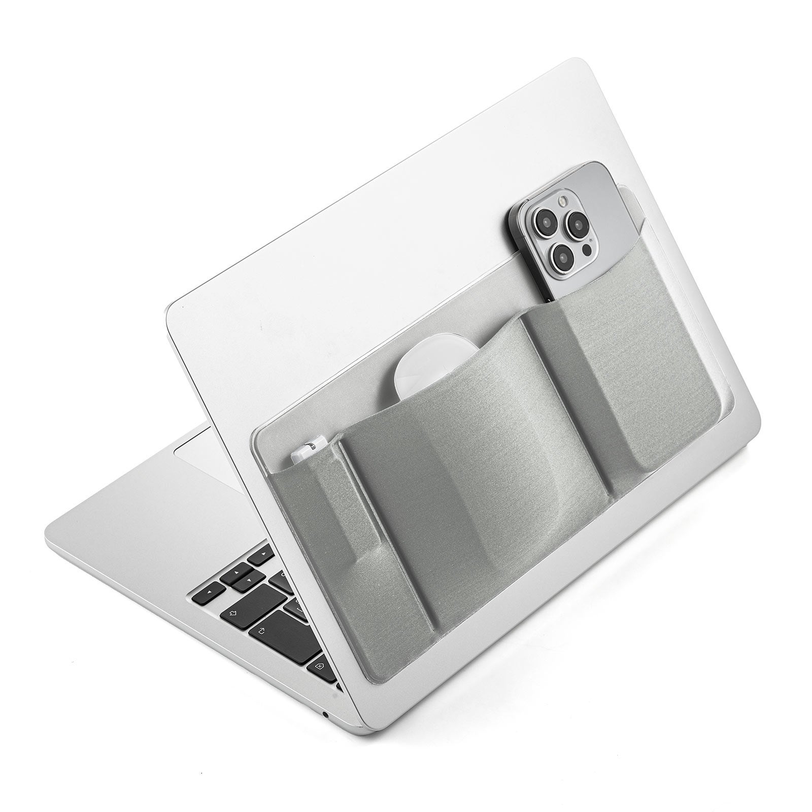 ノートPCに貼るだけで周辺機器もまとめて持ち運び出来る、ノートPC用ガジェットポーチ