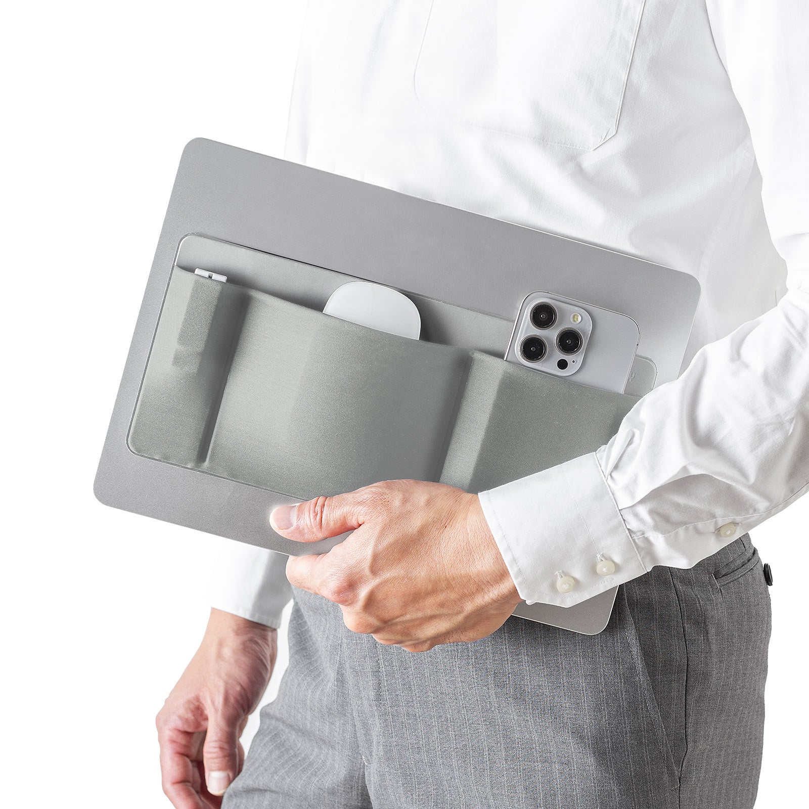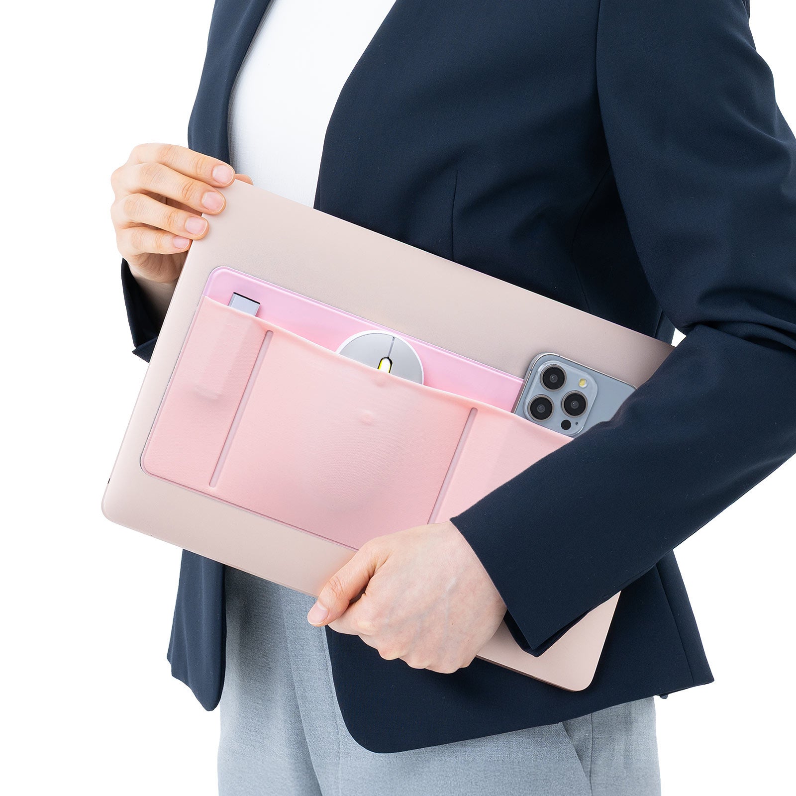 ノートPCの背面に直接設置するだけで、簡単に収納を増やせます。ケーブル、USBメモリ、カードリーダーなど、作業に必要な小物を一体化して持ち運べるため、バッグの中を探す手間が激減。外出先でもデスクでも、すぐに作業に取りかかれる快適なワークスタイルを実現します。