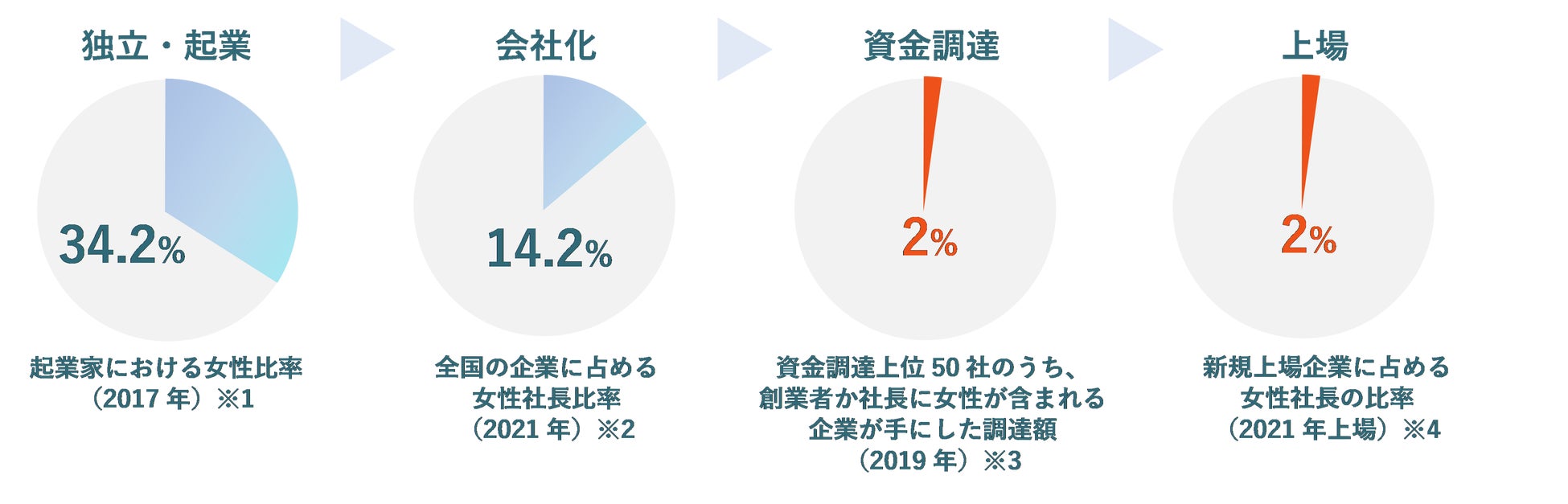 「日本におけるスタートアップ投資のうち女性起業家への投資額はわずか2パーセントという