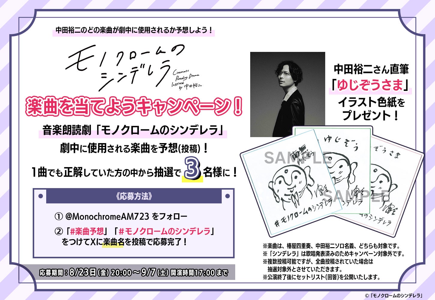音楽朗読劇「モノクロームのシンデレラ」公式Xでは、楽曲を当てようキャンペーンを開催中。