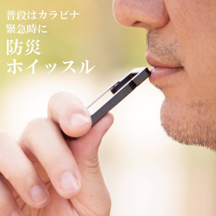 【こんなの探してた!】普段はカラビナ、緊急時にホイッスルになるカラビナ一体型防災ホイッスルが登場!
