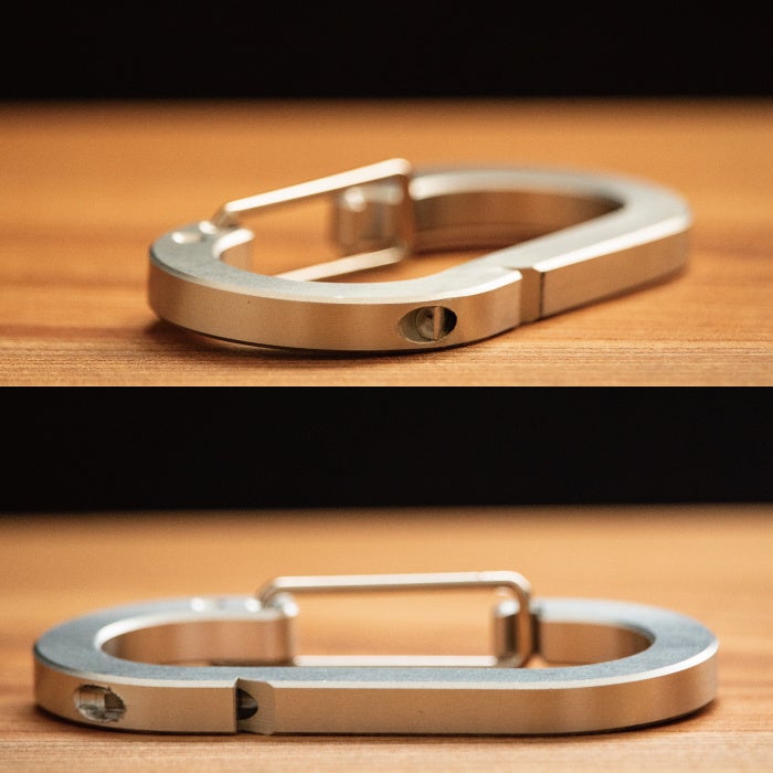 アルミ製で丈夫なうえ、カラビナ式なので鞄やパンツに引っ掛けることが可能で、携帯性に優れています。