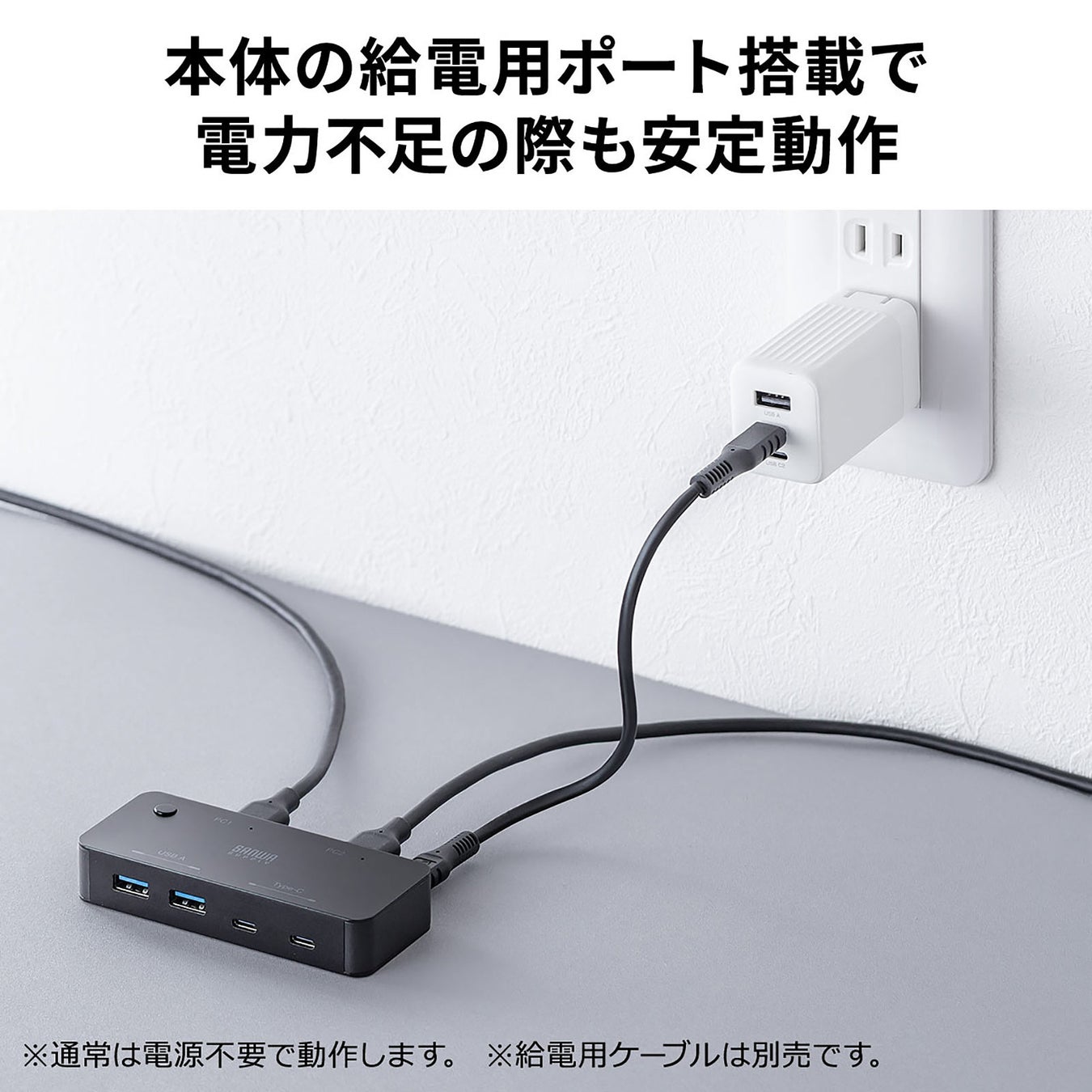サンワサプライ株式会社(本社:岡山市北区田町1-10-1、 代表取締役社長 山田 和範)が運営している直販サイト『サンワダイレクト』では、2台のPCで最大4台のUSB機器を高速共有でき、USB A/Type-C両対応の5Gbps切替器「400-SW041」を発売しました。