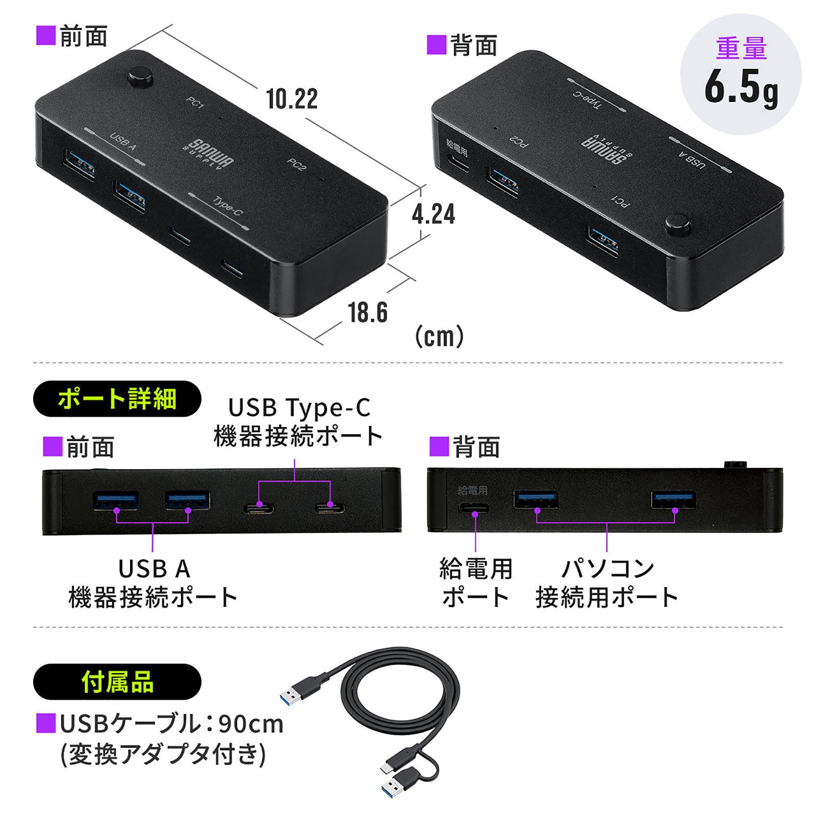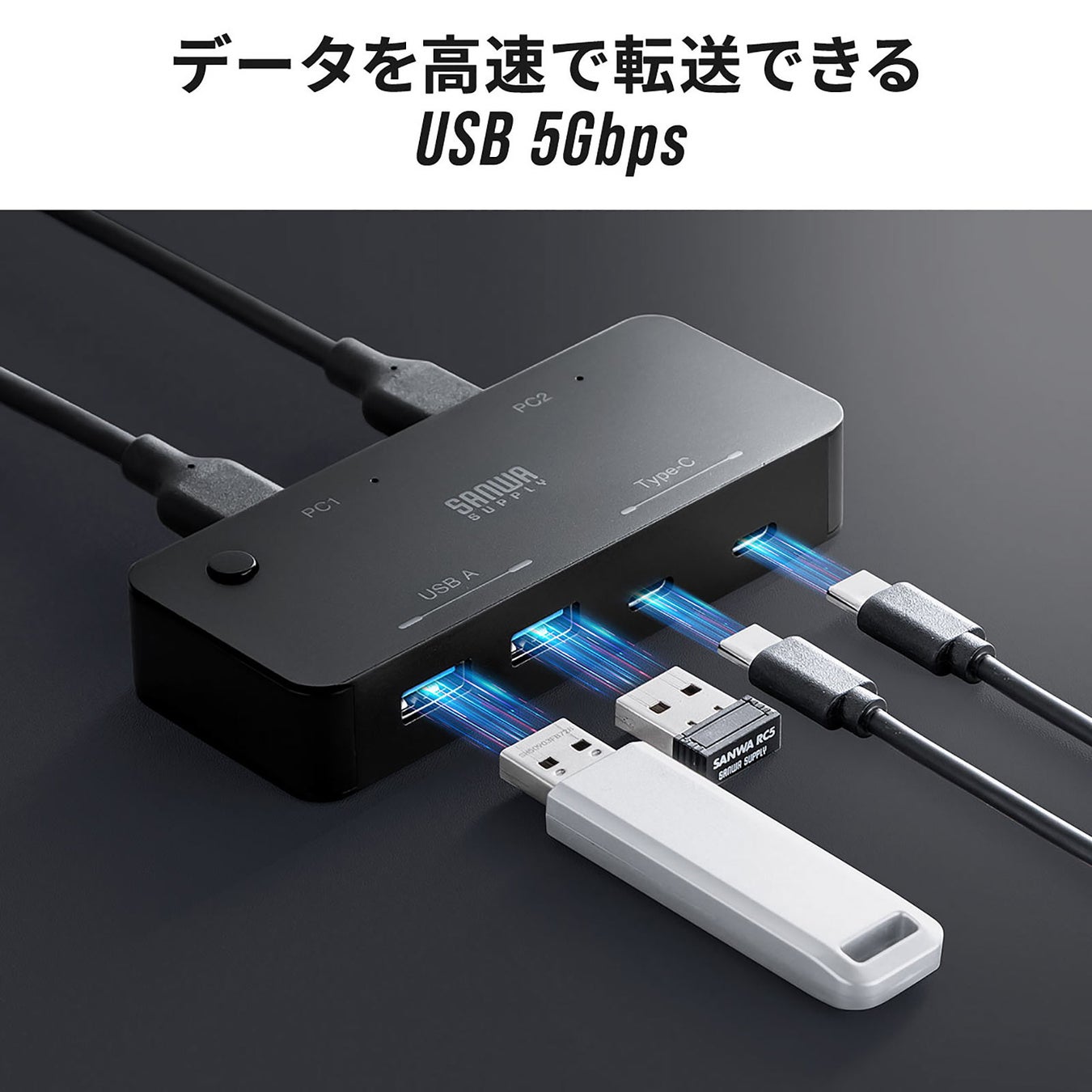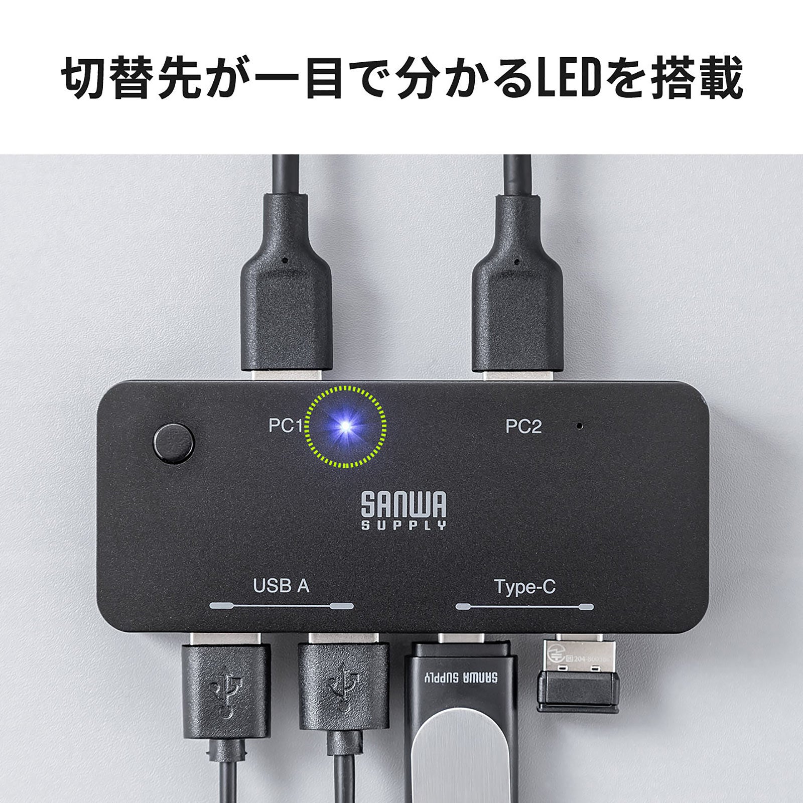 USB切替器 2系統4ポート USB A・Type C対応 ケーブル付属 5Gbps