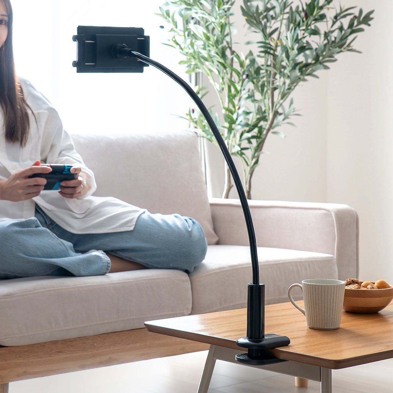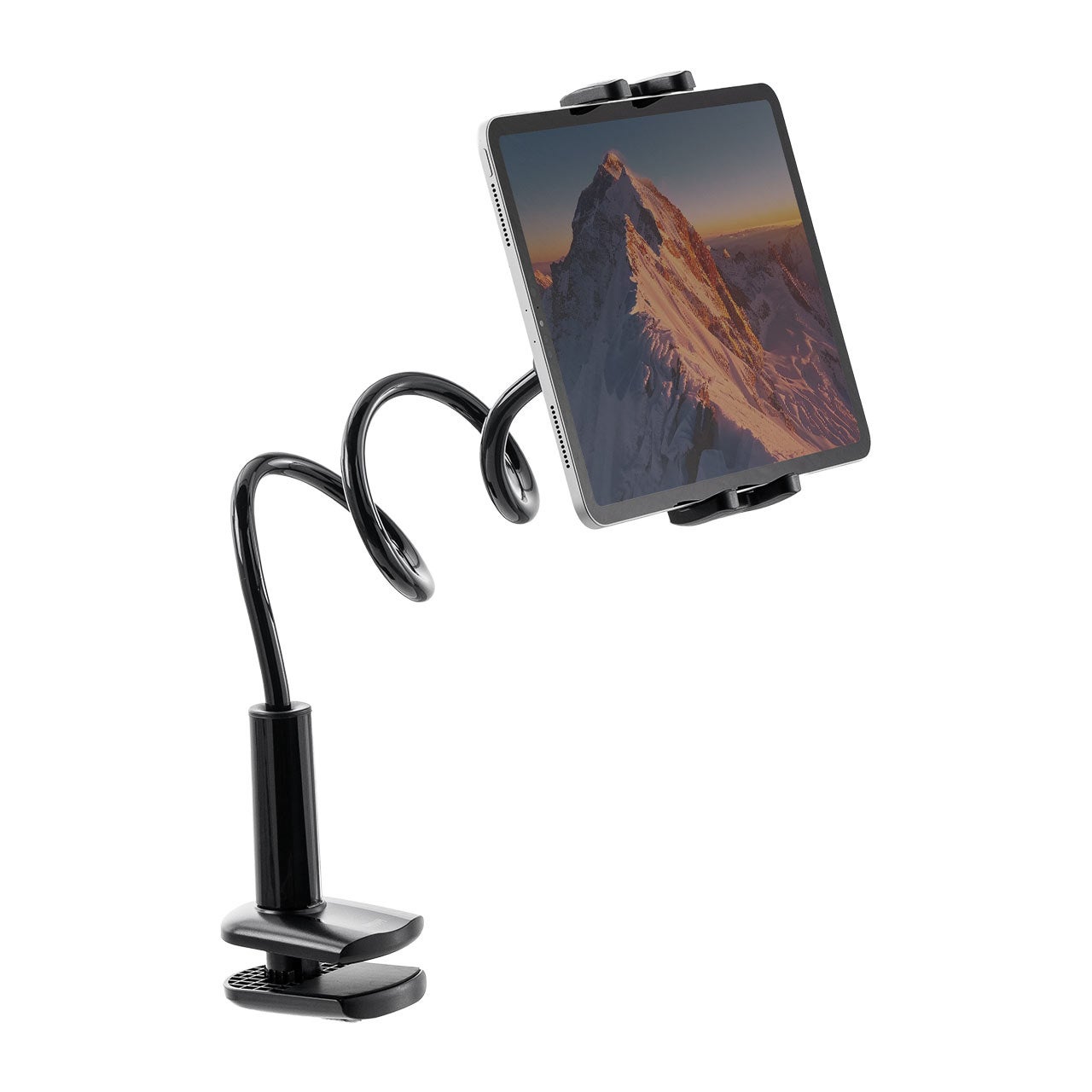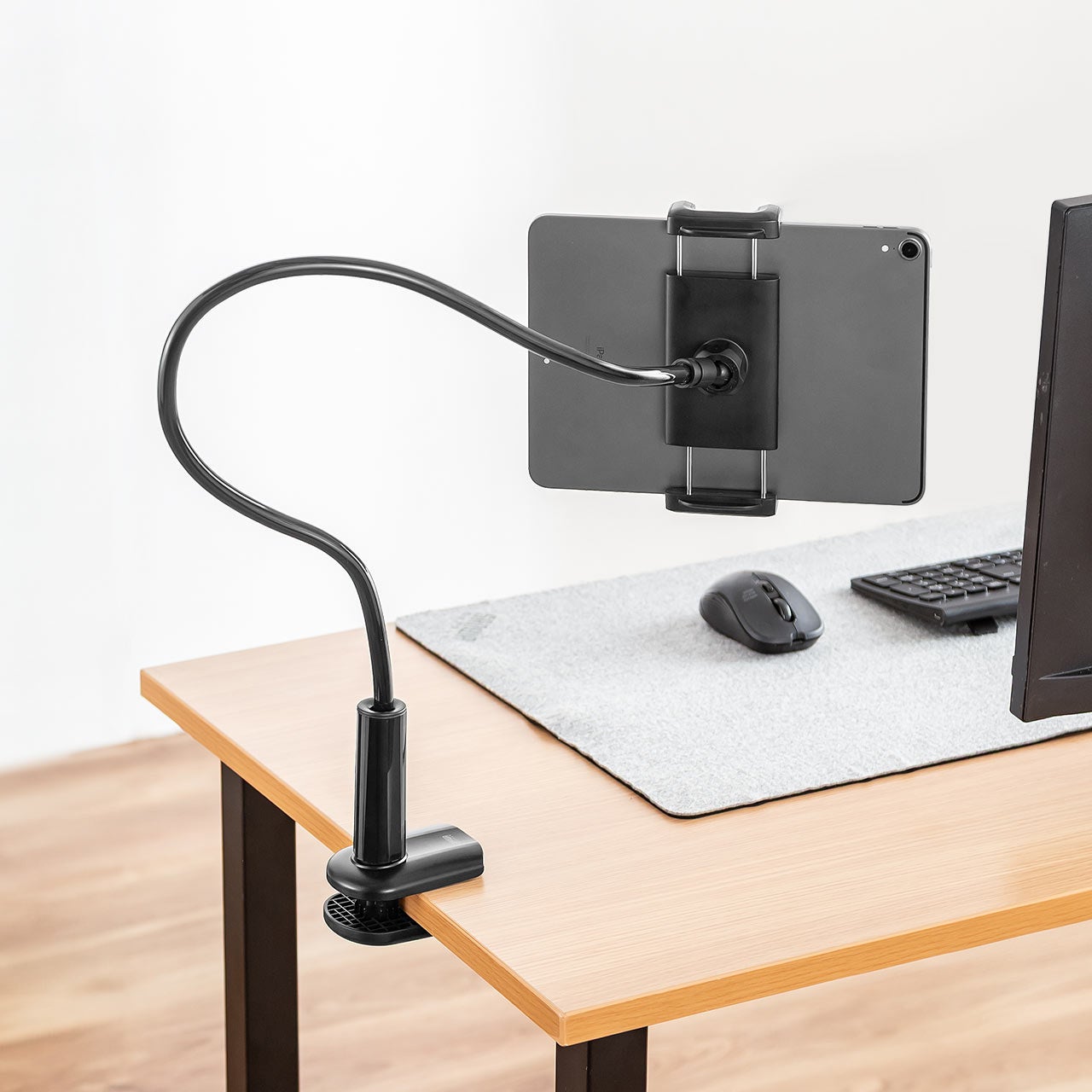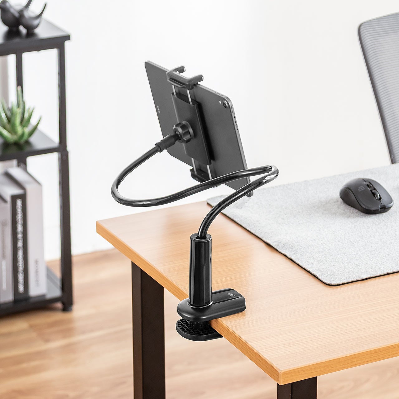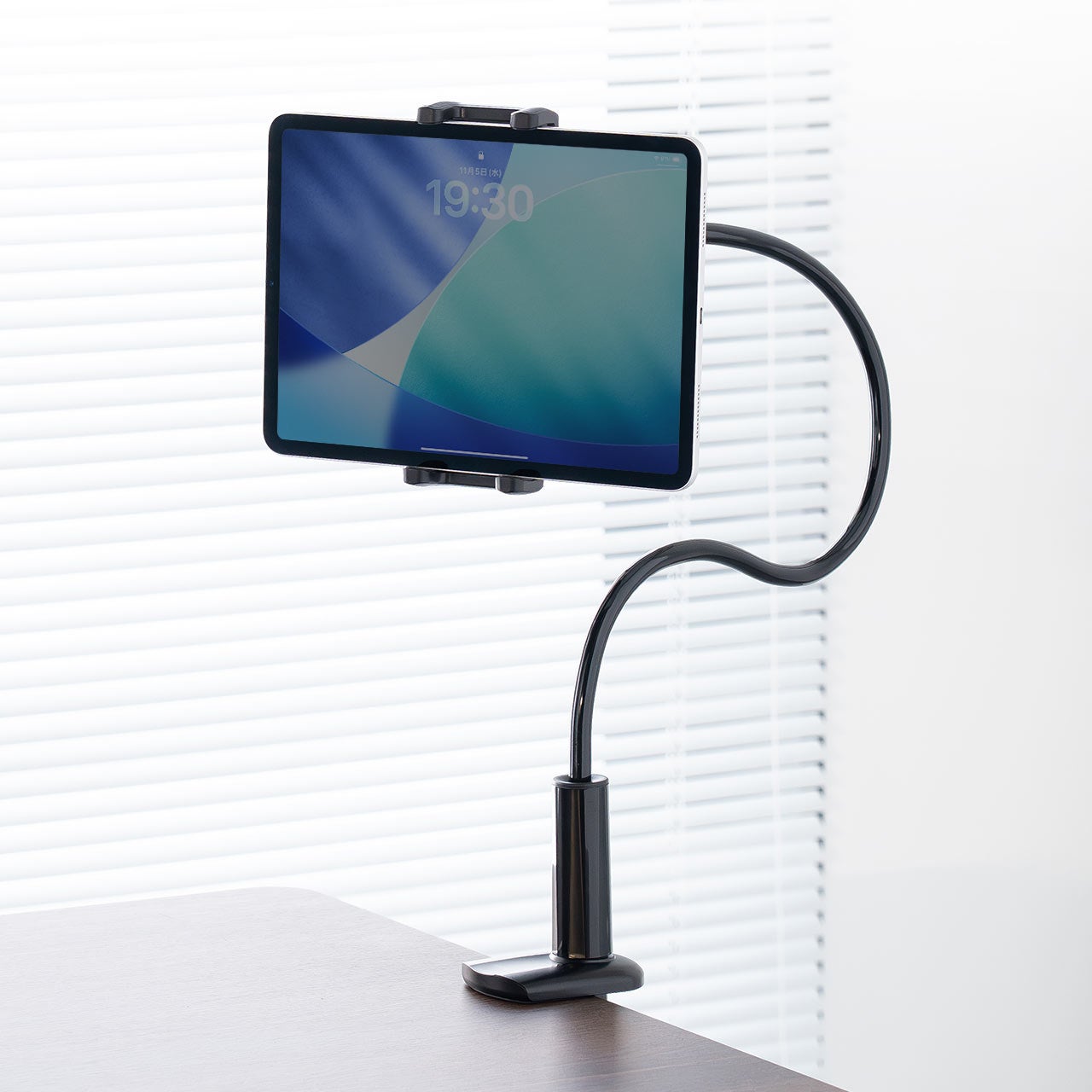 タブレットアームスタンド フレキシブルアーム 自由自在 スマホアーム クランプ固定式 デスクサイド ベッドサイド 寝ながら 360度回転