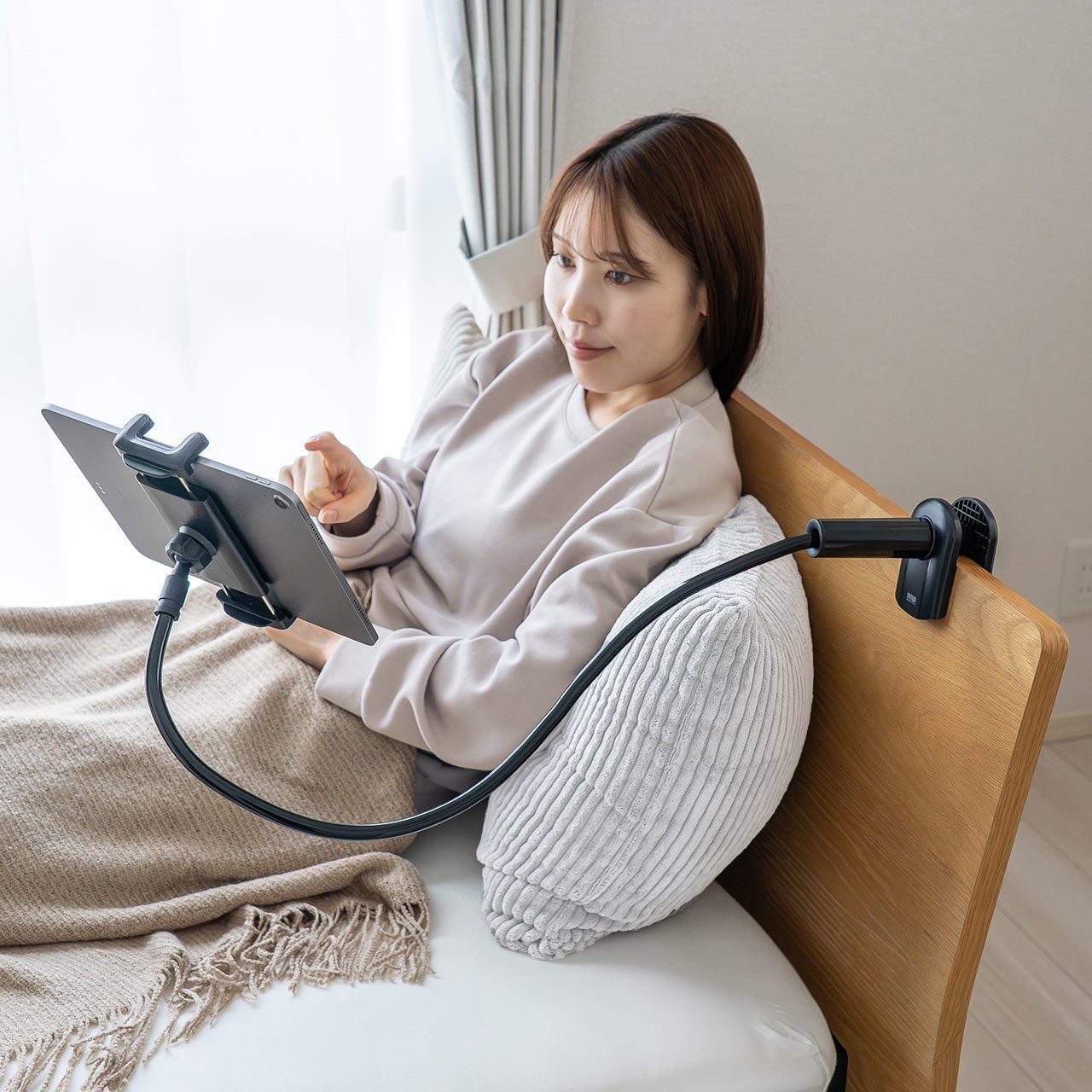 サンワサプライ株式会社(本社:岡山市北区田町1-10-1、 代表取締役社長 山田 和範)が運営している直販サイト『サンワダイレクト』では、寝ながらでも使える、自由自在に位置調整できるタブレット・スマホ用フレキシブルアームスタンド「200-STN096BK」を発売しました。
