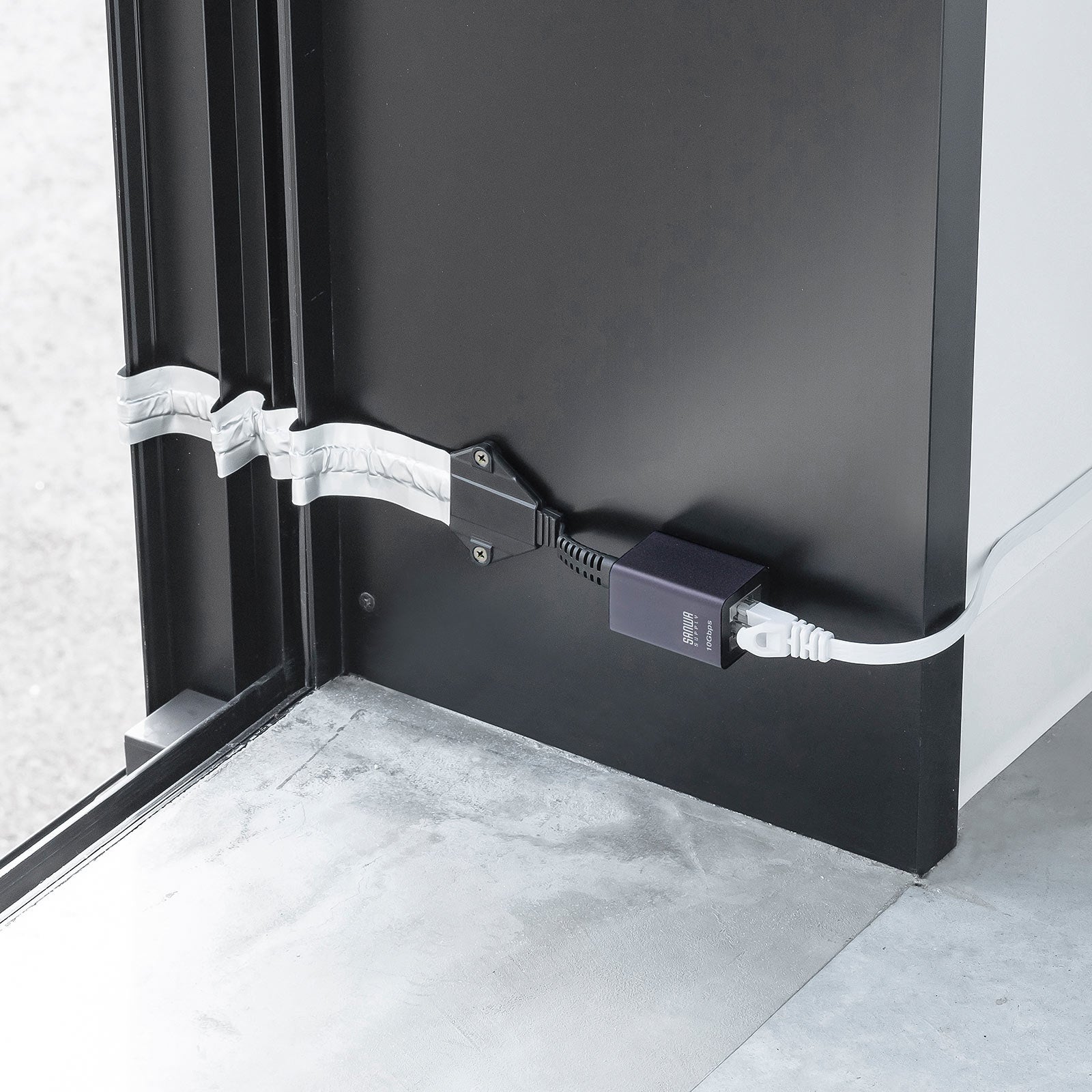 外壁に穴を開ける必要がなく、窓やドアのちょっとしたすきまを活用して屋外からLANケーブルを引き込める便利なすきま用LANケーブルです。工事の手間もコストもゼロで、ベランダやガレージに設置したネットワーク機器をそのまま室内で利用可能に。賃貸でも安心して導入いただけます。