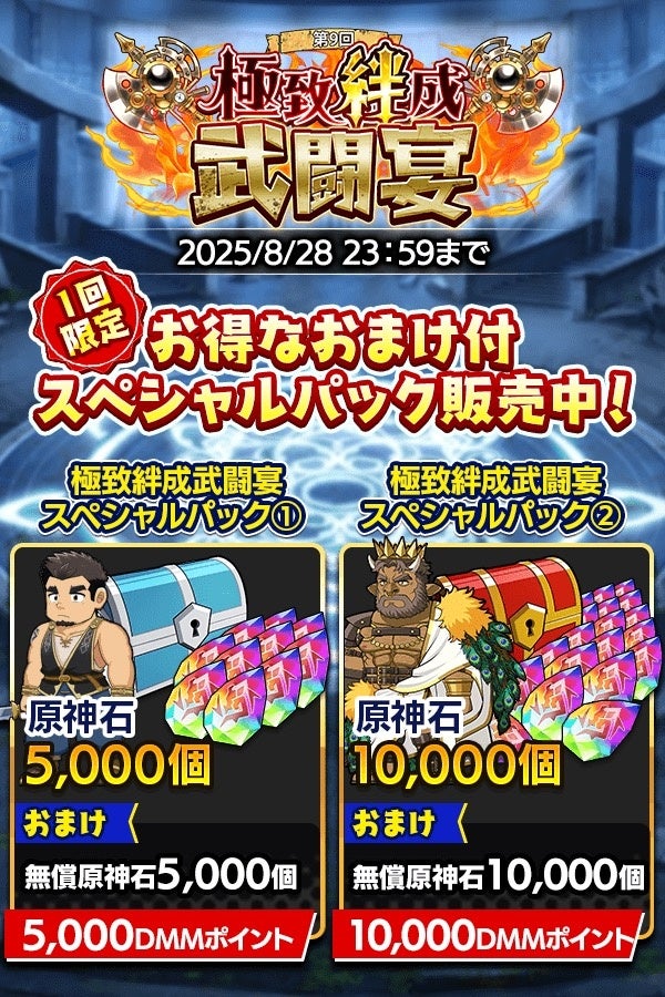 イベント期間中、原神石がおトクに購入できる「第9回極致絆成武闘宴スペシャルパック」が2種登場!