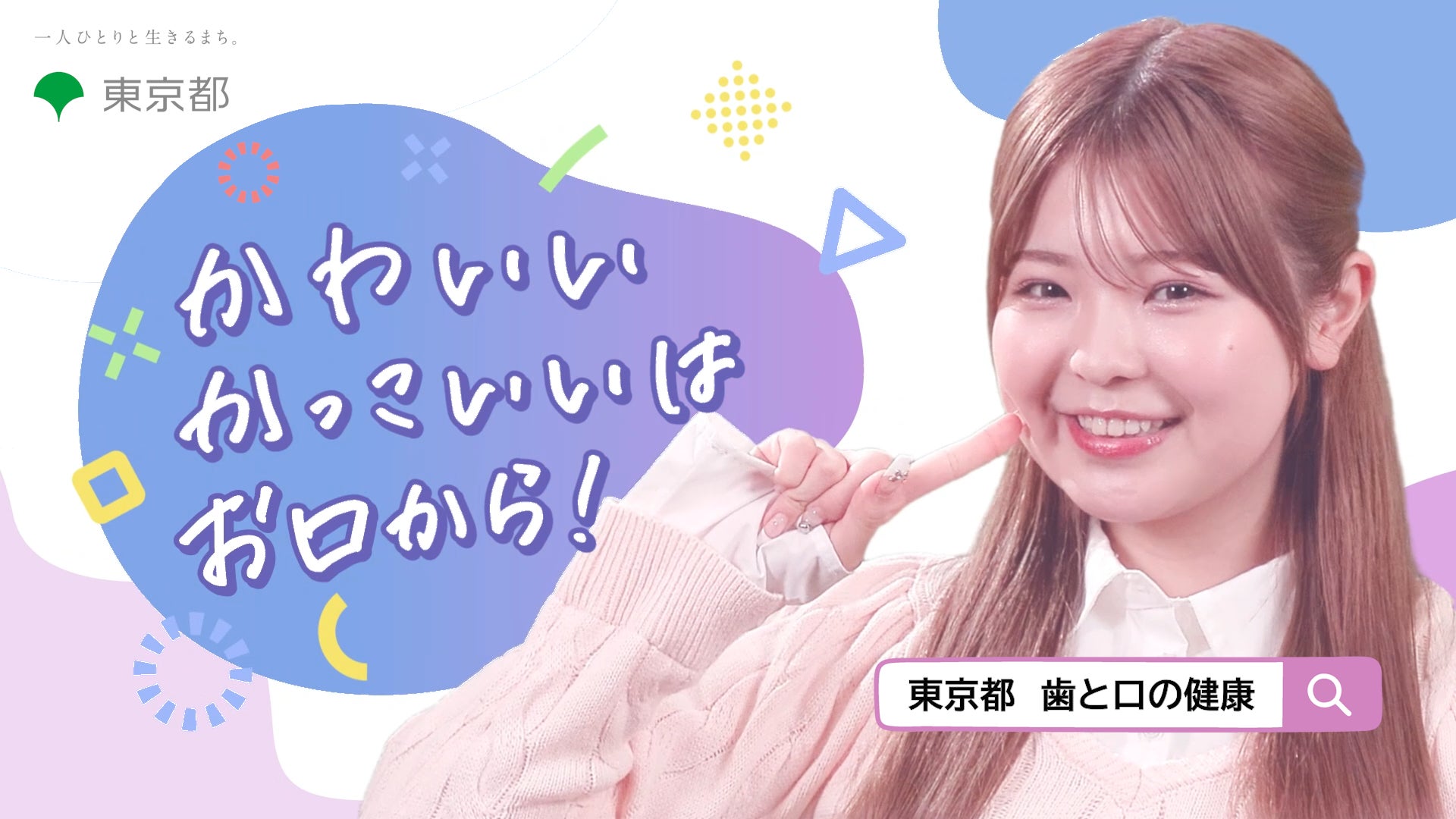 そのため、都は、若いうちから歯と口の健康づくりに取り組んでいただけるよう、動画を作成しました。今回は、メイク動画が大人気のインフルエンサーの折田涼夏さんにご出演いただきました。