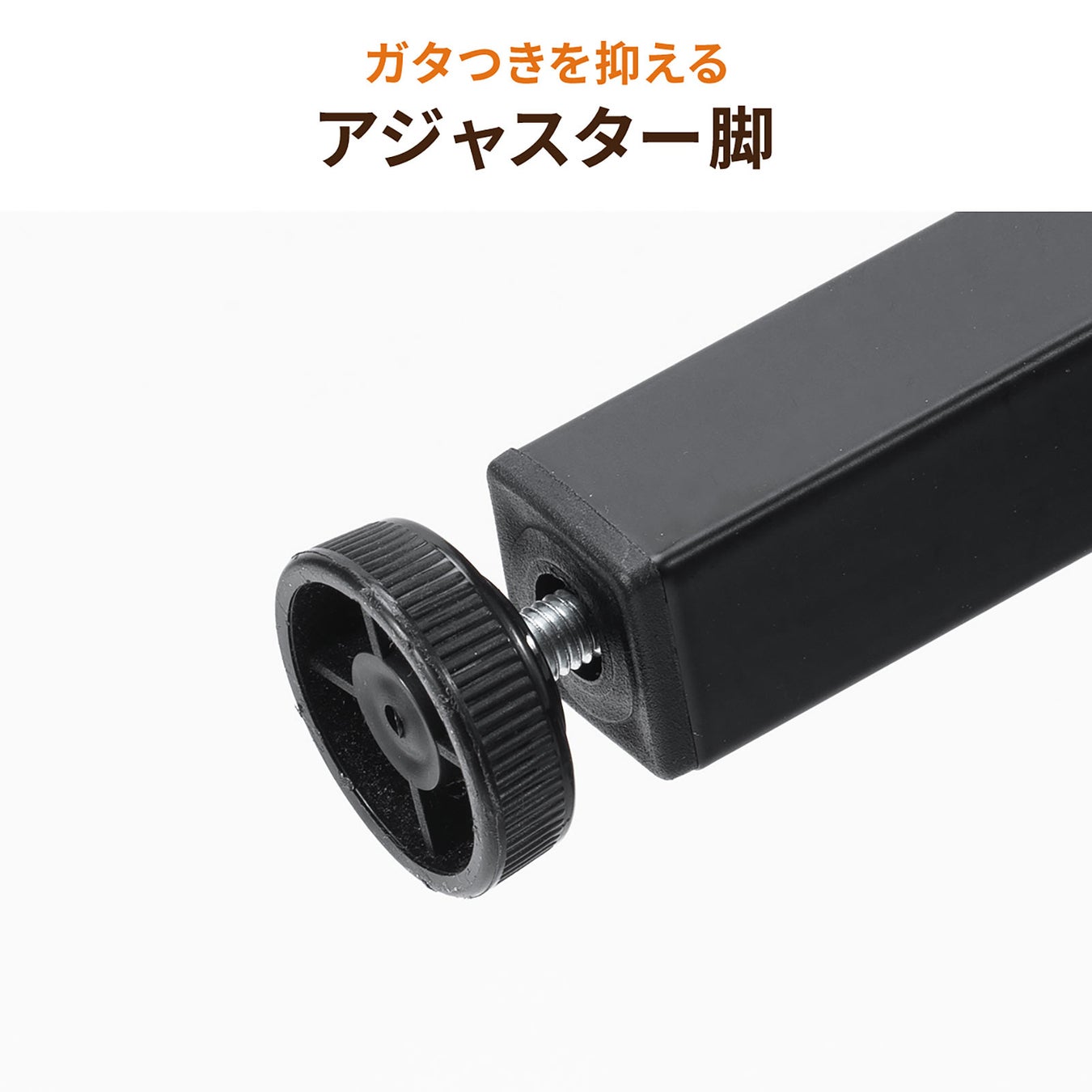 フレームに耐久性の高いスチールを採用し、マグネット収納との相性も抜群。ケーブルホルダーや小物ケースなどを自由に追加できます。また、アジャスター付きで床のわずかな凹凸にも対応。安定した作業環境をしっかり支えます。
