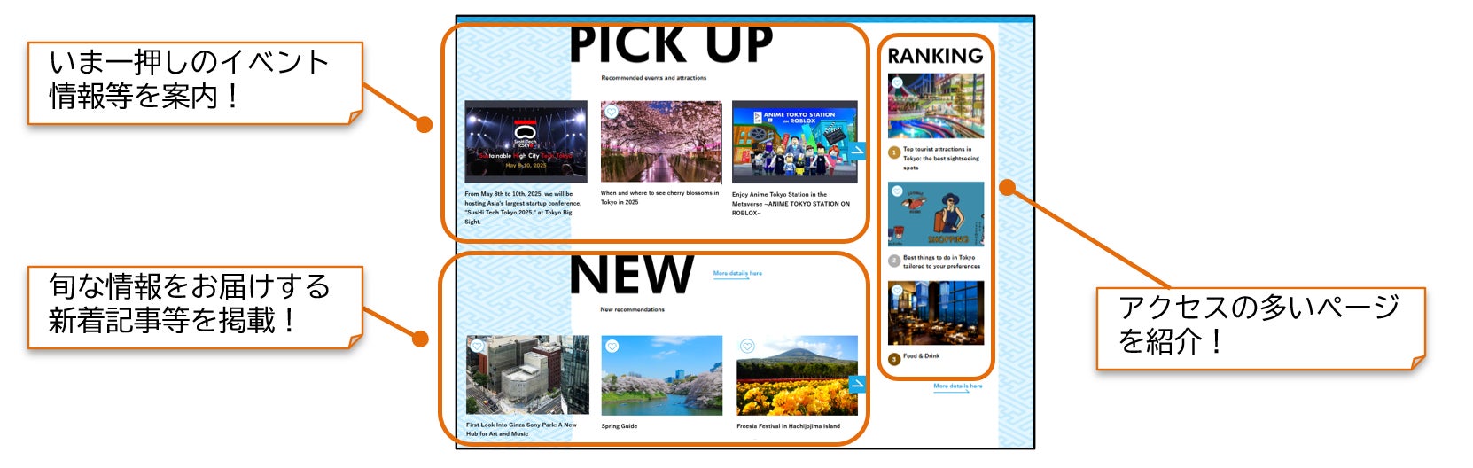 最新のおすすめ情報に加え、「GO TOKYO」内の人気の観光情報ページをランキング形式で紹介