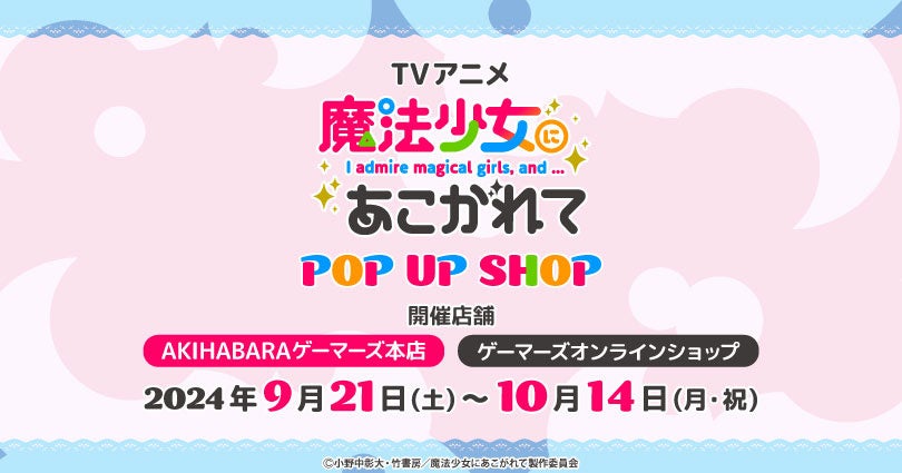 株式会社カードラボ ゲーマーズ(本社:東京都豊島区、https://www.gamers.co.jp/ 以下ゲーマーズ)は、2024年9月21日(土)よりTVアニメ「魔法少女にあこがれて」POP UP SHOPを開催することをお知らせいたします。