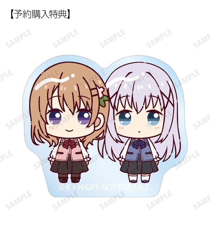 ココア、チノ、リゼ、千夜、シャロがちょこんと立っているちびキャラを新たに描き起こし、アクリルステッカーに仕上げました。