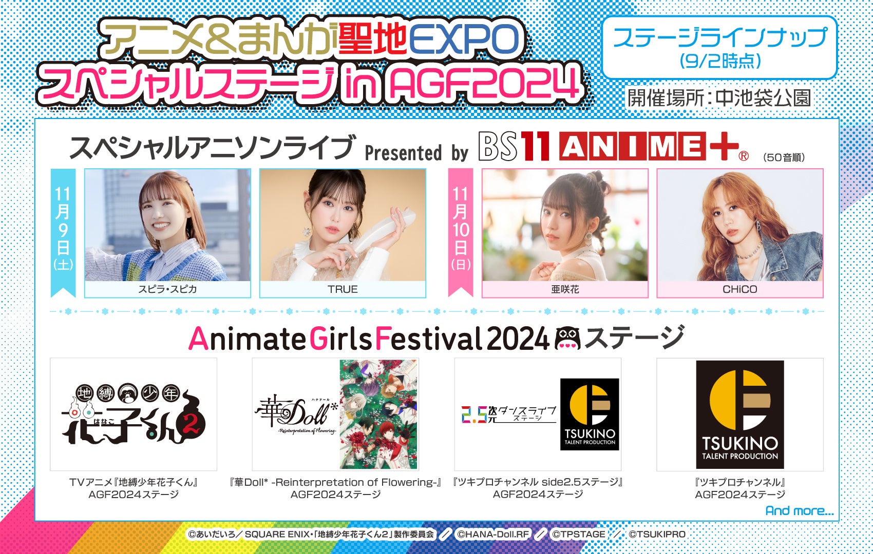 『アニメイトガールズフェスティバル2024』11/9、10の池袋の街ナカではTVアニメ「地縛少年花子くん」・「華Doll*」・「ツキノ芸能プロダクション」を含む屋外ステージを開催!