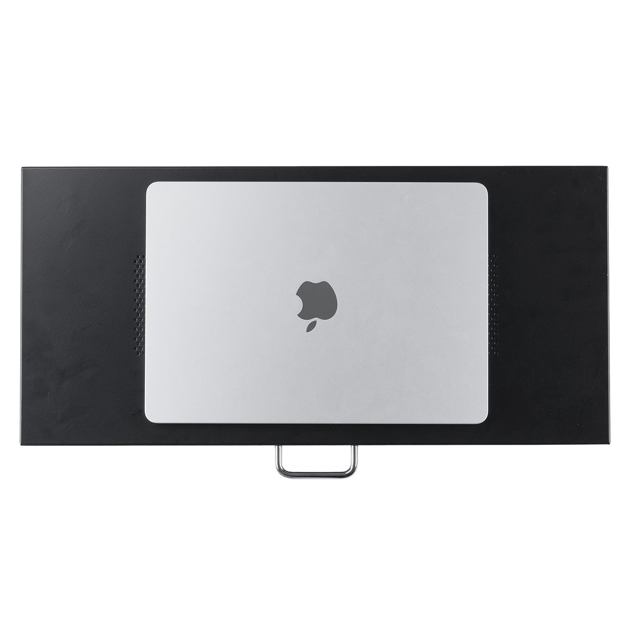 幅60cmのモニター台に合わせて設計されており、デスク周りに自然に収まるサイズ感が特徴。見た目もスマートで、机上を乱さず美しく整理できます。限られたスペースを最大限に活かしたい方に最適です。