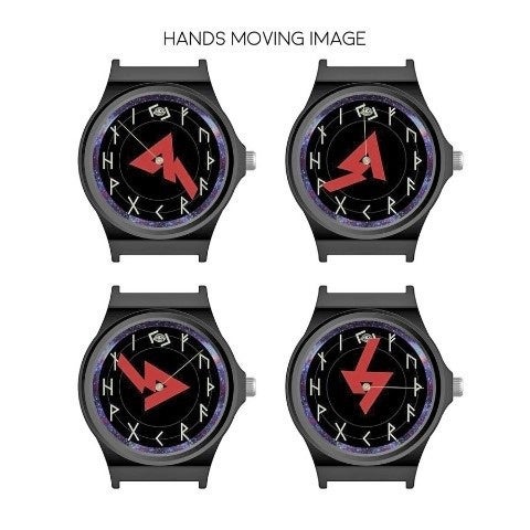 文字盤には宇宙が描かれ、古代ルーン文字の数字が蓄光で記されています。