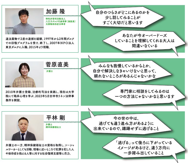 オーバードーズ編、大麻編ごとに、3人の専門家の動画を公開します。
