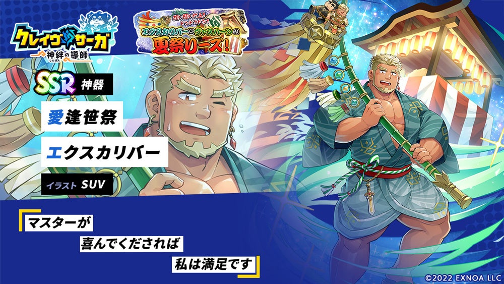 『クレイヴ・サーガ 神絆の導師』 シナリオイベント「想い願い打上! ドンドコドン!エクスカリバーとヴァスハーンの夏祭りーズ!」開催!イベントログインボーナスやスペシャルパック販売など実施!