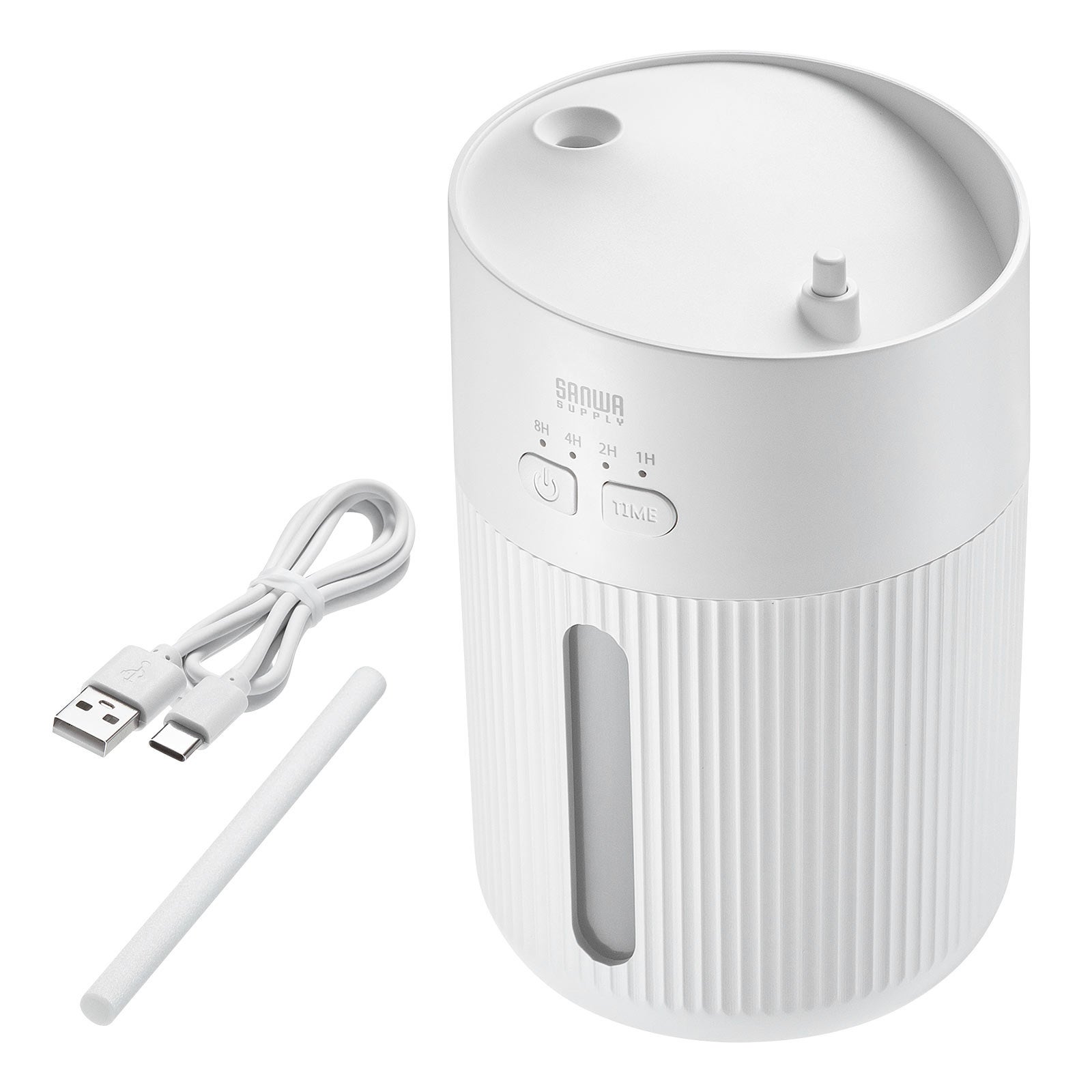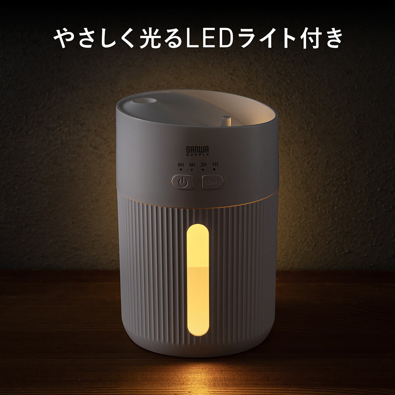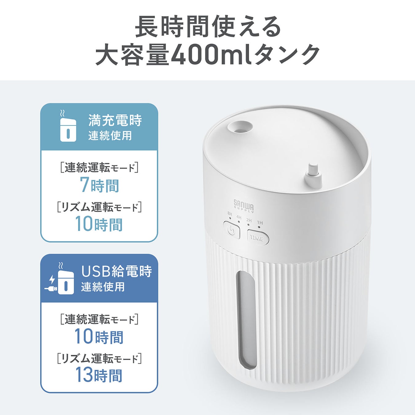 加湿器 卓上 超音波式 上部給水 バッテリー式 USB充電 400ml 水漏れ防止 タイマー付き 静音 小型 LEDライト オフィス 寝室 上から給水 ホワイト
