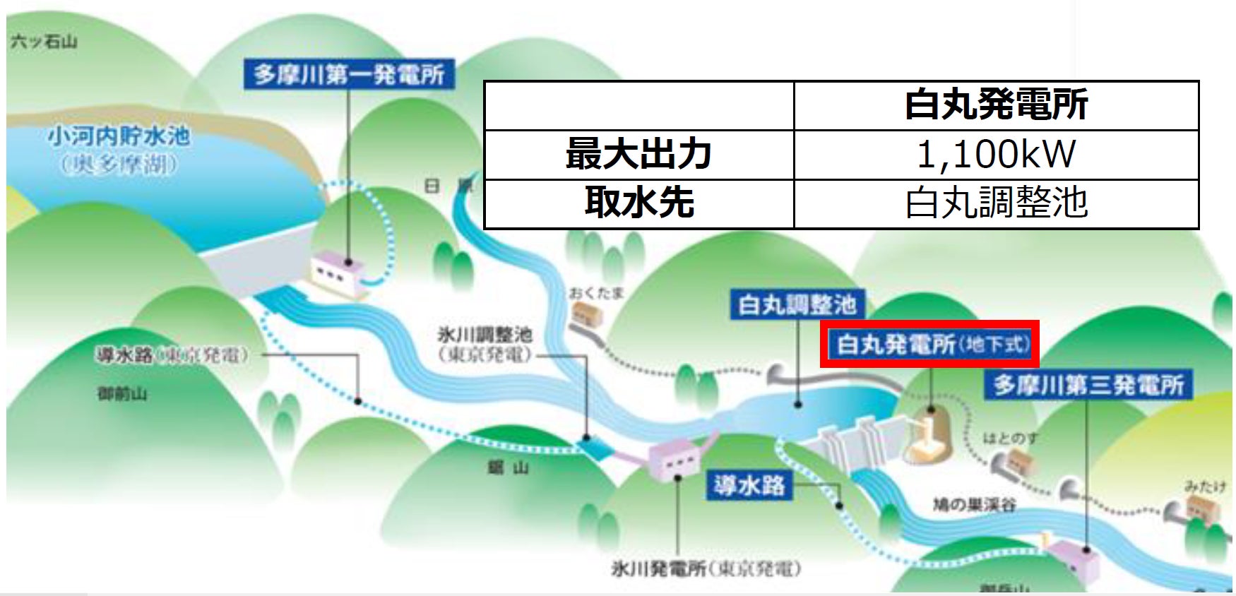東京都交通局は、多摩川の流水を利用した水力発電を行っています。