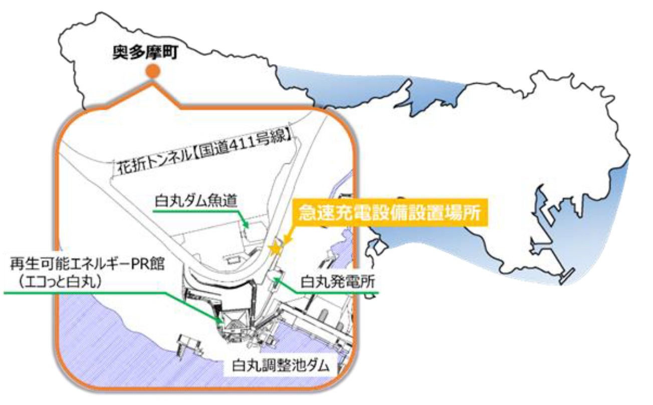 奥多摩の白丸発電所でEV用急速充電設備がご利用いただけるようになります
