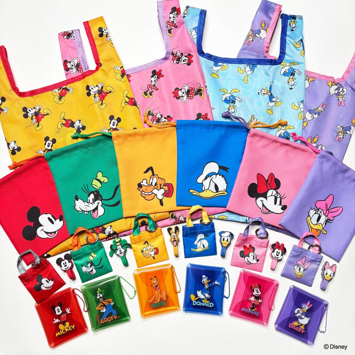 ブラインド仕様のミニミニバッグはお出かけのバッグにつけてもお手持ちのぬいぐるみに持たせても可愛い!持ち手までカラフルな厚手のミニトートバッグは使いやすく、テーマパークやオフィスでも活躍しそうなキャラクターたちの愛嬌のある仕草がぎゅっと描かれたネックストラップを加え、毎日の生活が明るくなる全35品番のラインナップでお届けします。