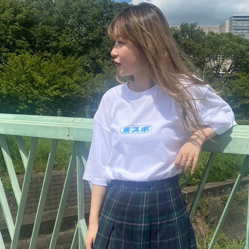 白地のTシャツに「東スポと言えばこのロゴ!」をプリントした商品で、色んなファッションにあわせやすいシンプルなデザイン!