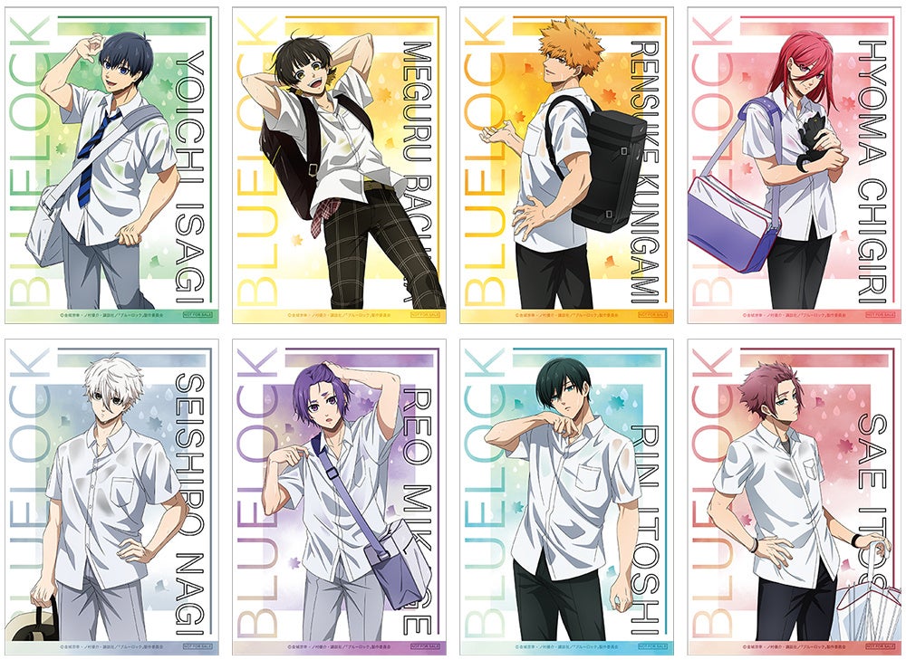 開催内容:『ブルーロック』関連のグッズをご購入・ご予約内金1,100円(税込)毎、または書籍・CD・Blu-ray・DVDをご購入・ご予約(内金1,100円〈税込〉以上必須)1点毎に、特典「イラストカード(全8種)」を1枚プレゼントいたします。
