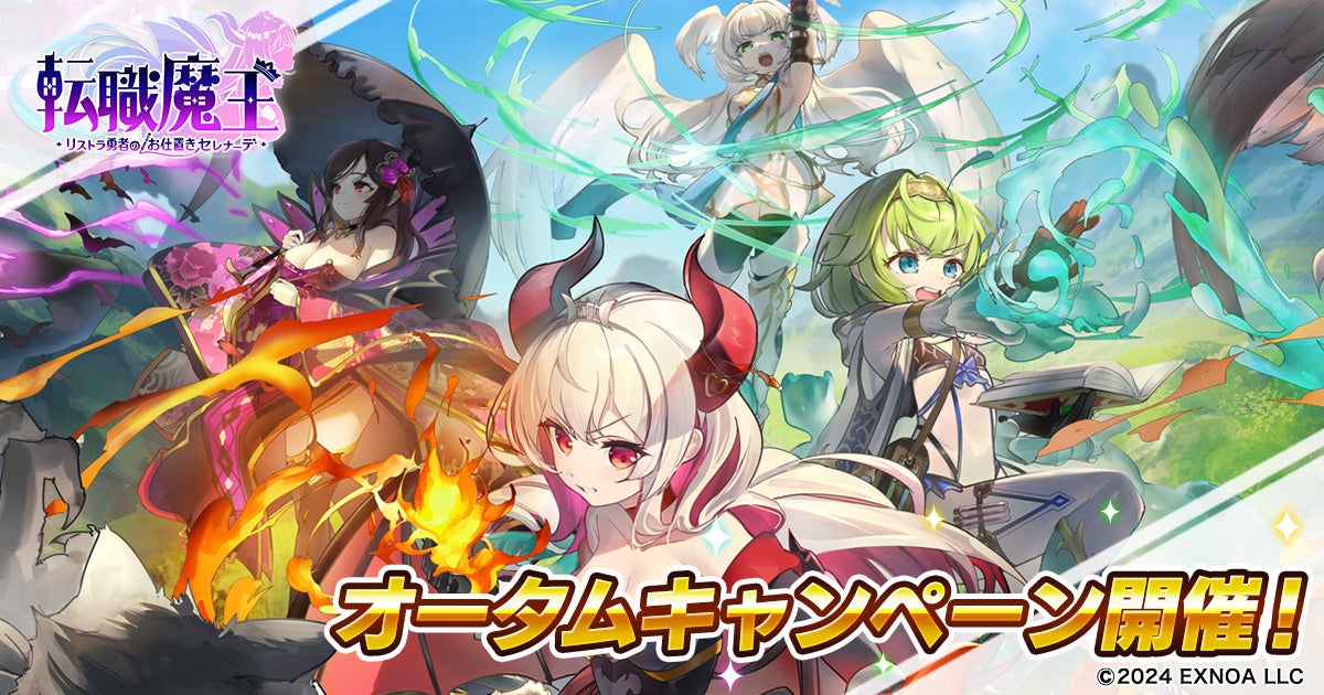 合同会社EXNOA(本社:東京都港区、CEO:村中 悠介、URL:https://games.dmm.com/)が運営するDMM GAMESは、『転職魔王~リストラ勇者のお仕置きセレナーデ~』(以下、『転職魔王』)にてオータムキャンペーンを開始したことをお知らせいたします。本キャンペーンでは、豪華アイテムが手に入るログインボーナスを実施するほか、新たなキャラクター「【LR】リネット」が登場いたします。