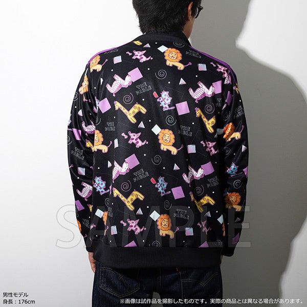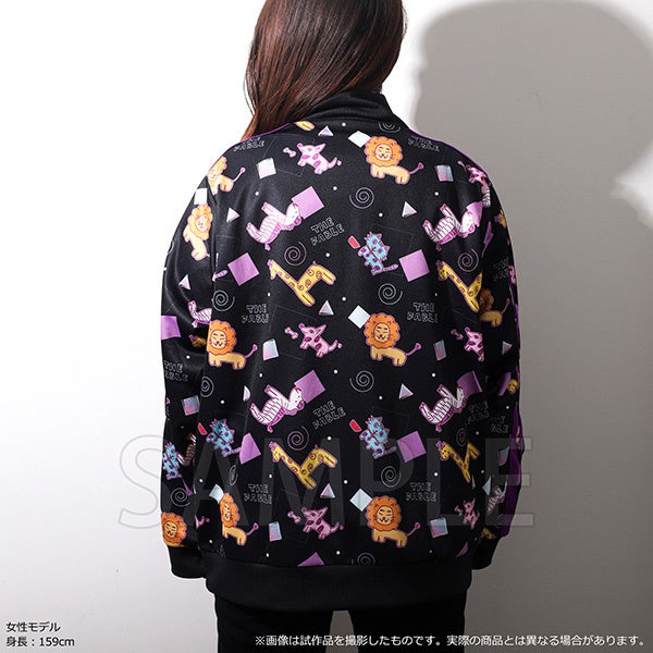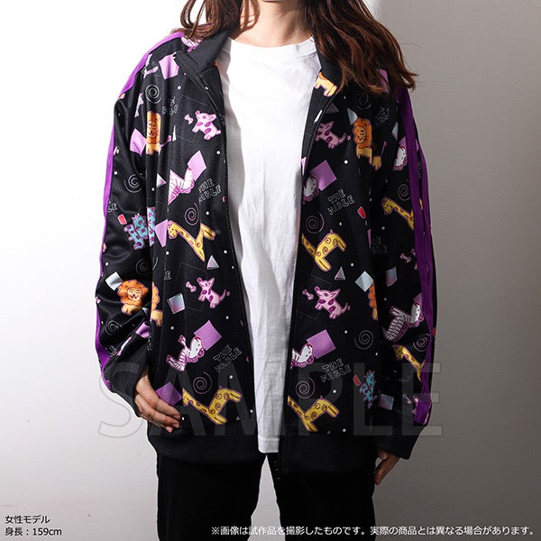 黒地にアキラ手描きのゆるいイラストが映える、遊び心満載のジャージです。