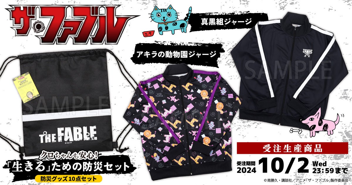 TVアニメ『ザ・ファブル』より、ジャージ2種と防災セットが受注生産商品で登場!