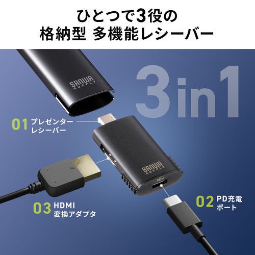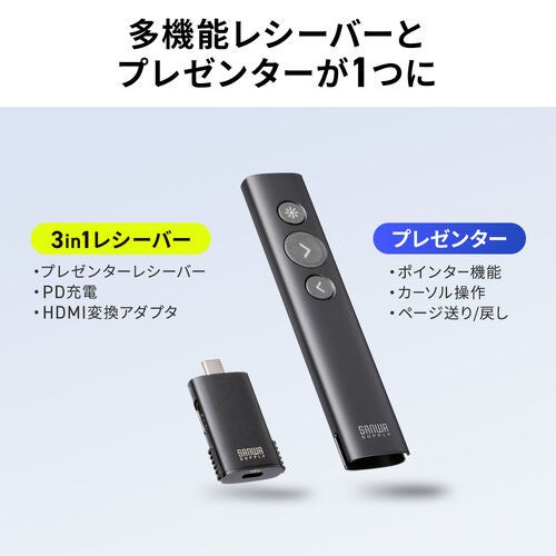 サンワサプライ株式会社(本社:岡山市北区田町1-10-1、 代表取締役社長 山田 和範)が運営している直販サイト『サンワダイレクト』では、HDMI出力やPD充電に対応した多機能レシーバーを付属する「ワイヤレスプレゼンター(型番:200-LPP051BK)」を発売しました。