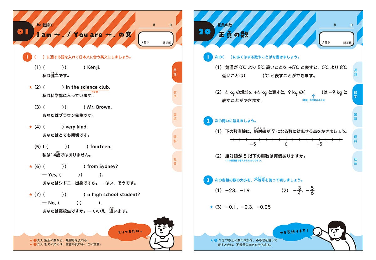 学習指導要領に合わせて、中学1年生で押さえるべき内容を1冊にギュッと凝縮。