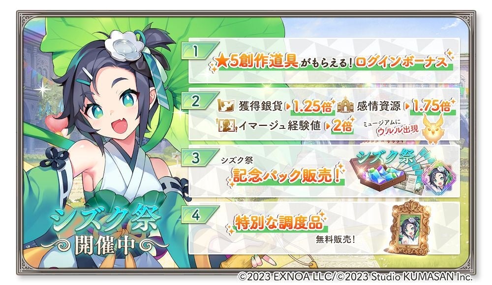 ★5創作道具がもらえるログインボーナスや各種倍率アップキャンペーン等、様々な催しを実施いたします。