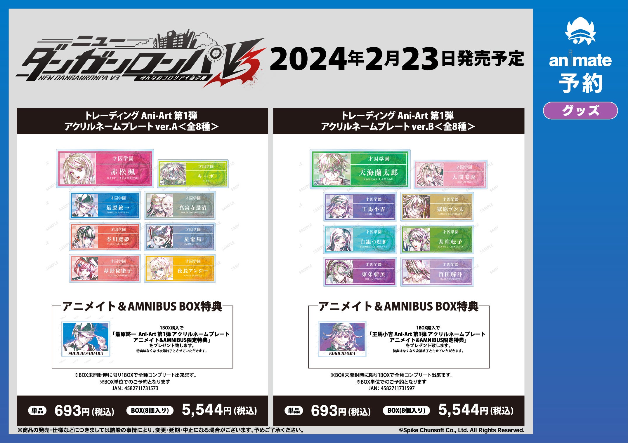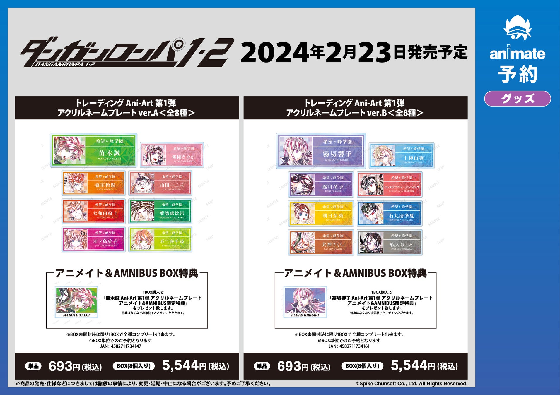 1BOX購入で「最原終一 Ani-Art 第1弾 アクリルネームプレート アニメイト&AMNIBUS限定特典」をプレゼントいたします。特典はなくなり次第終了とさせていただきます。