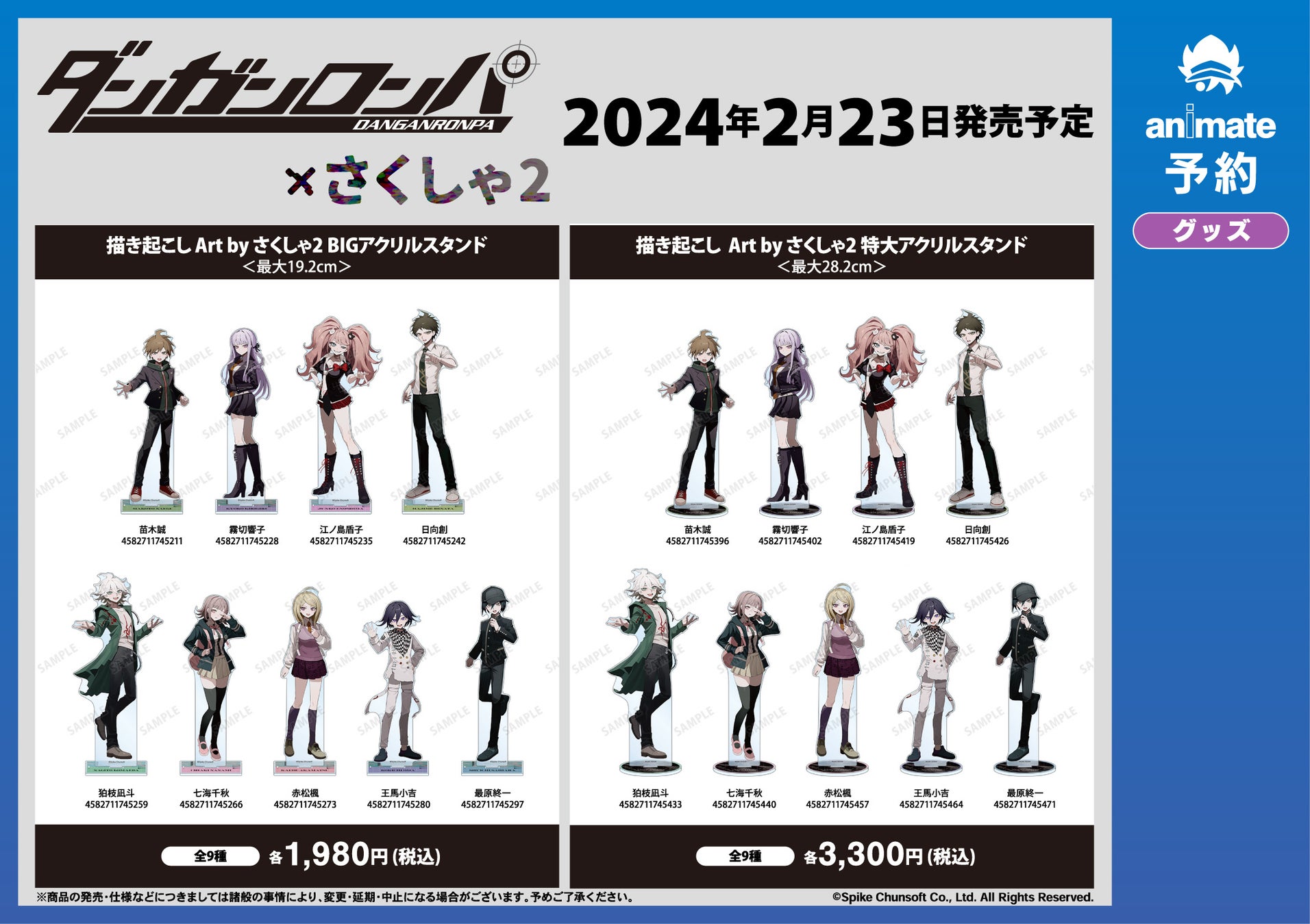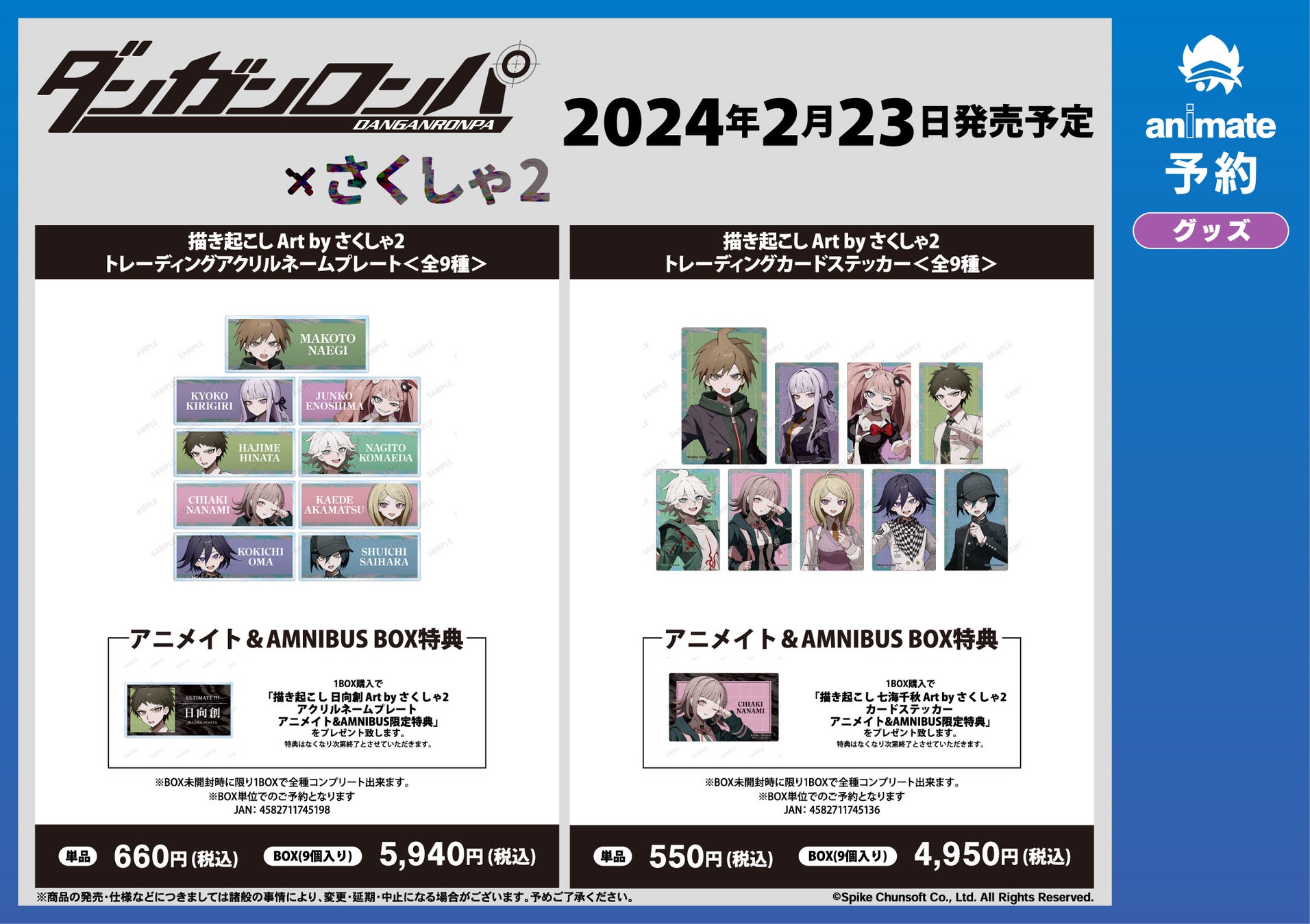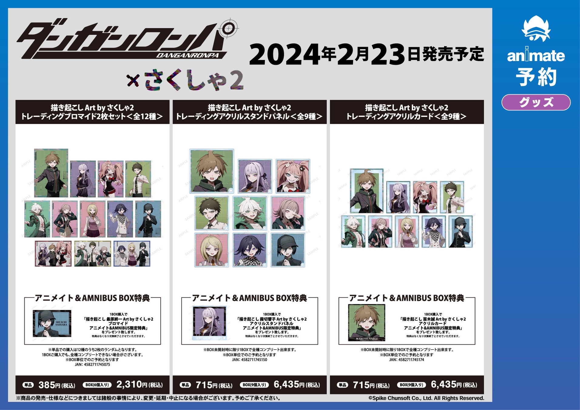 2024年2月23日(金・祝)よりアニメイト対象店舗にて「ダンガンロンパシリーズ×さくしゃ2」アニメイトフェアの実施が決定いたしました。