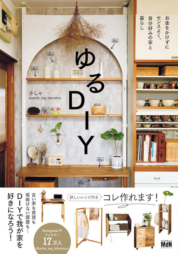 本書は、昭和な賃貸一軒家を原状回復可能なDIYで自分好みの空間に変えている著者( Instagram@sacha_sng_laboratory )の簡単、時短、ローコストなDIYレシピを紹介。