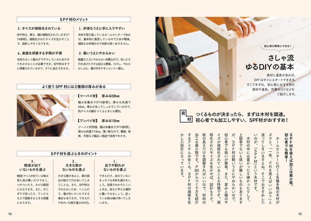 市販の手頃で便利なリメイクグッズの活用法から、プランタースタンド、2WAYテーブル、収納ボックス付きチェスト、引き出し付き収納、収納付きベンチ、壁掛けシェルフ、物干しスタンド、アイロン台など、初心者でも作れるオシャレでかわいい家具のレシピ付き!