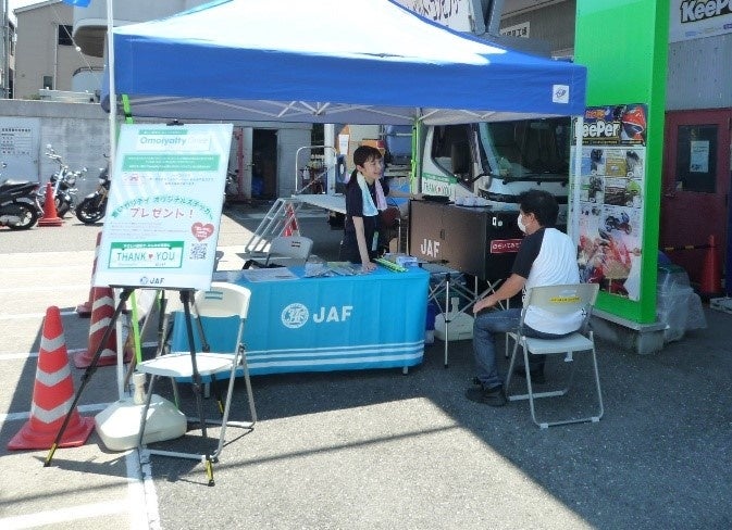 JAF大阪支部は、クルマだけではなくバイクユーザーを対象に、バイクのロードサービスの認知拡大・交通安全意識の向上を目的として、本イベントにブースを出展します。イベント当日は交通安全クイズや反射材の効果体験ができるリフレクボックスを出展、参加いただいた方にはノベルティを進呈します。また「思いやりティドライブ」の賛同者を募集、ご賛同いただいた方には思いやりティドライブステッカーを進呈します。