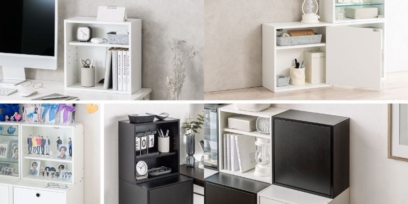 複数を組み合わせて大きめの棚としてリビングに設置したり、自分だけの推し活スペースを作ったりと、使い方は自由自在。いつでも簡単に組み換えできるため、子ども部屋に設置して、成長や学習アイテムに合わせてレイアウトを変更するのもおすすめです。