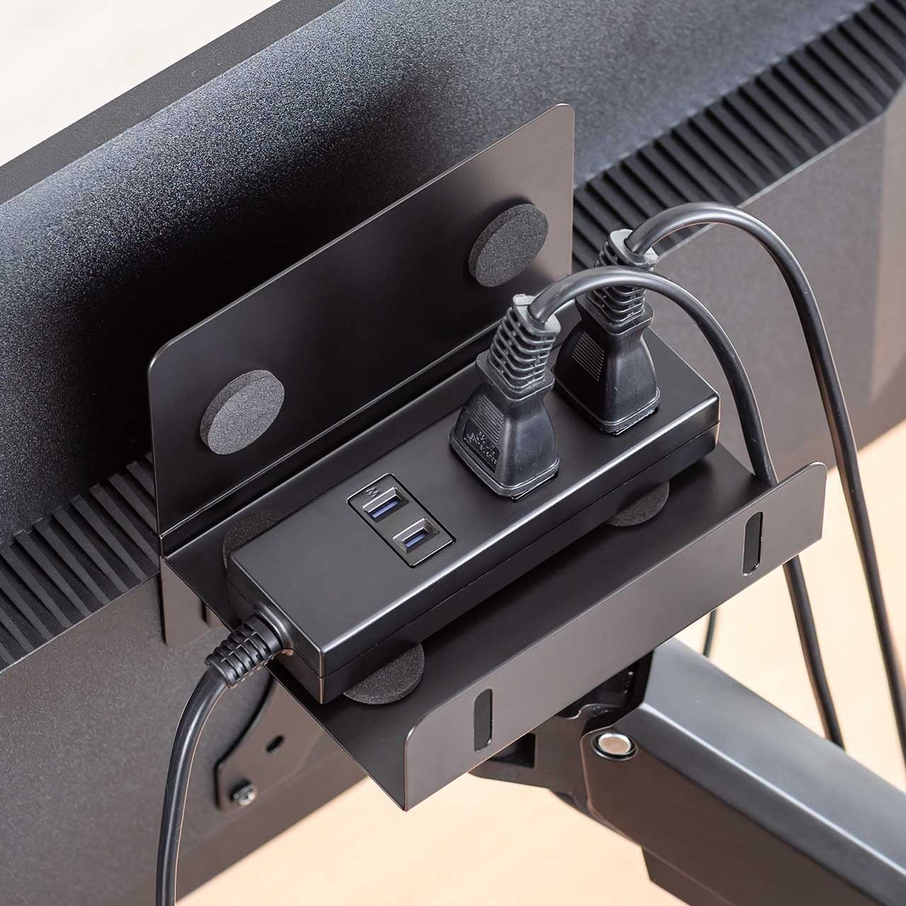 これまで使われていなかったモニター背面のスペースを、実用的な収納空間へと変えるのが本製品の最大の特長です。VESA規格のネジ穴を使用するため、見た目もすっきり。外付けHDDや小型PC、Nintendo Switchなどを浮かせて設置でき、デスク上の煩雑さを一気に解消します。